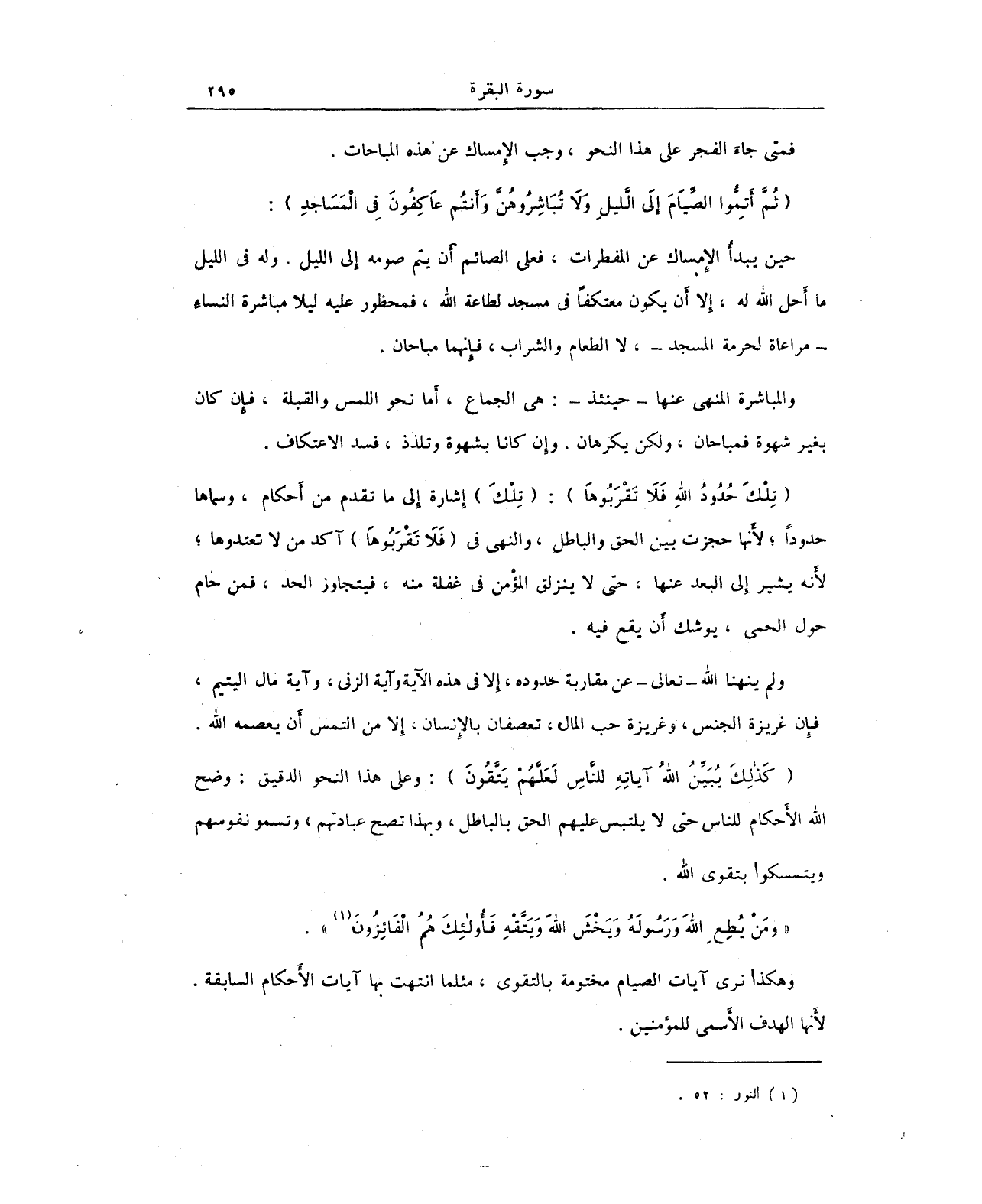 ولم ينهنا الله - تعالى - عن مقاربة حدوده، إلا في هذه الآية وآية الزنى، وآية مال اليتيم، فإن غريزة الجنس، وغريزة حب المال، تعصفان بالإنسان، إلا من التمس أن يعصمه الله.