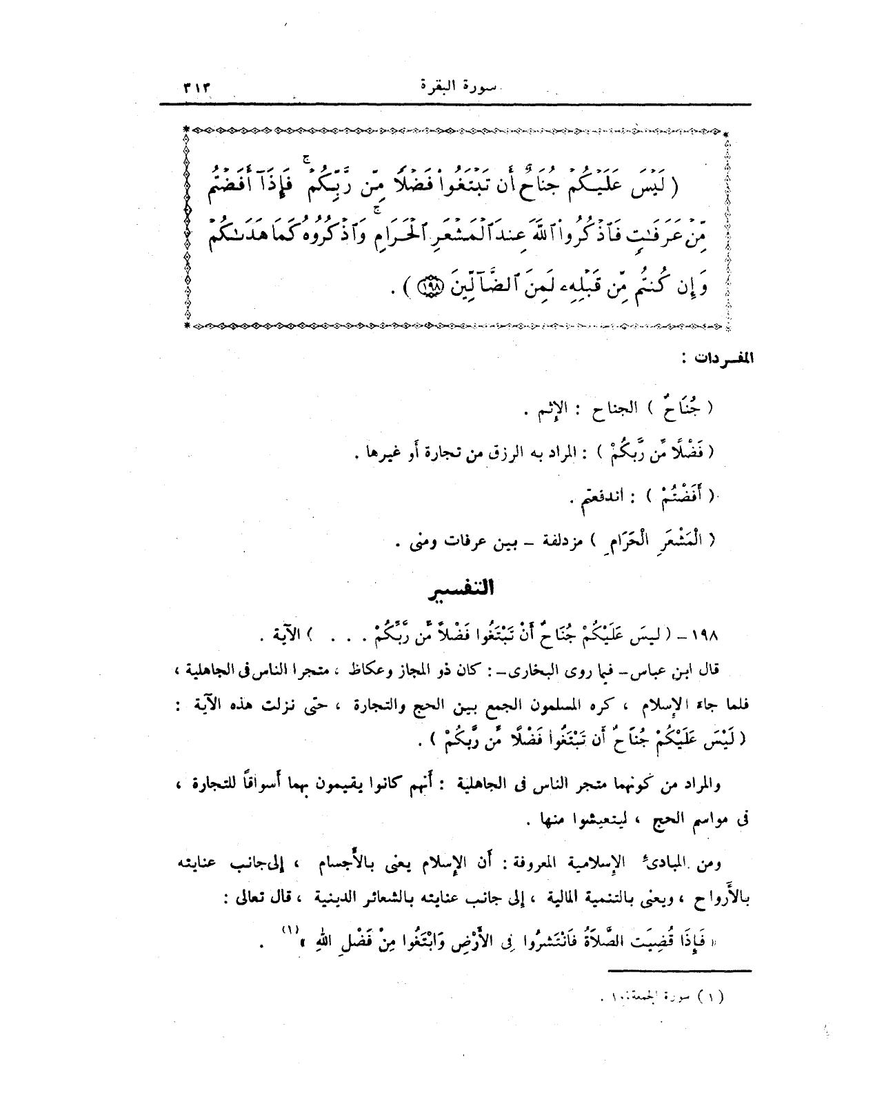 198 - {لَيْسَ عَلَيْكُمْ جُنَاحٌ أَن تَبْتَغُوا فَضْلًا مِّن رَّ بِّكُمْ ... } الآية.