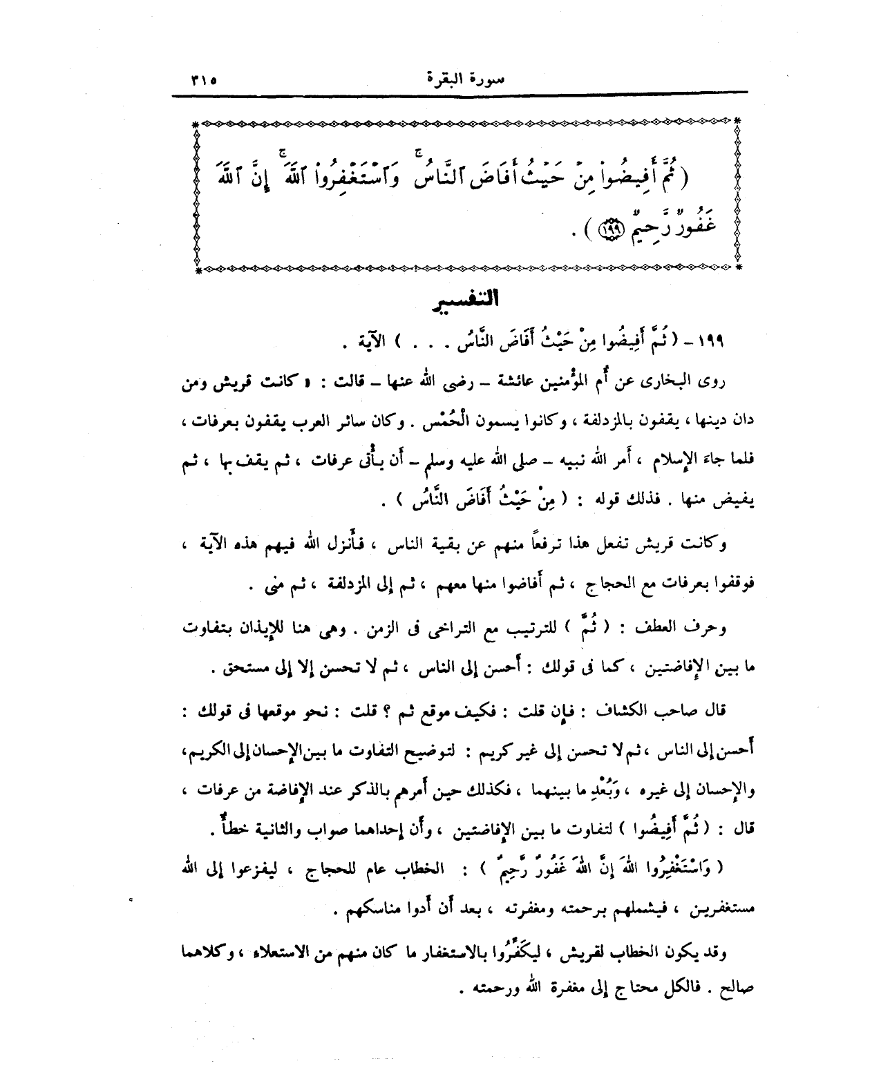 199 - {ثُمَّ أَفِيضُوا مِنْ حَيْثُ أَفَاضَ النَّاسُ ... } الآية.
