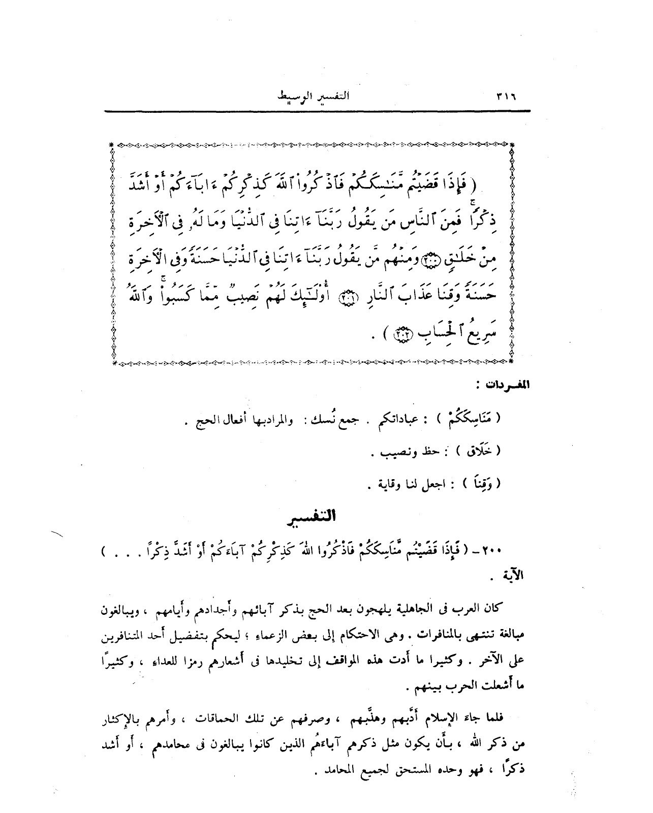 200 - {فَإِذَا قَضَيْتُم مَّنَاسِكَكُمْ فَاذْكُرُوا اللَّهَ كَذِكْرِكُمْ آبَاءَكُمْ أَوْ أَشَدَّ ذِكْرًا ... } الآية.
