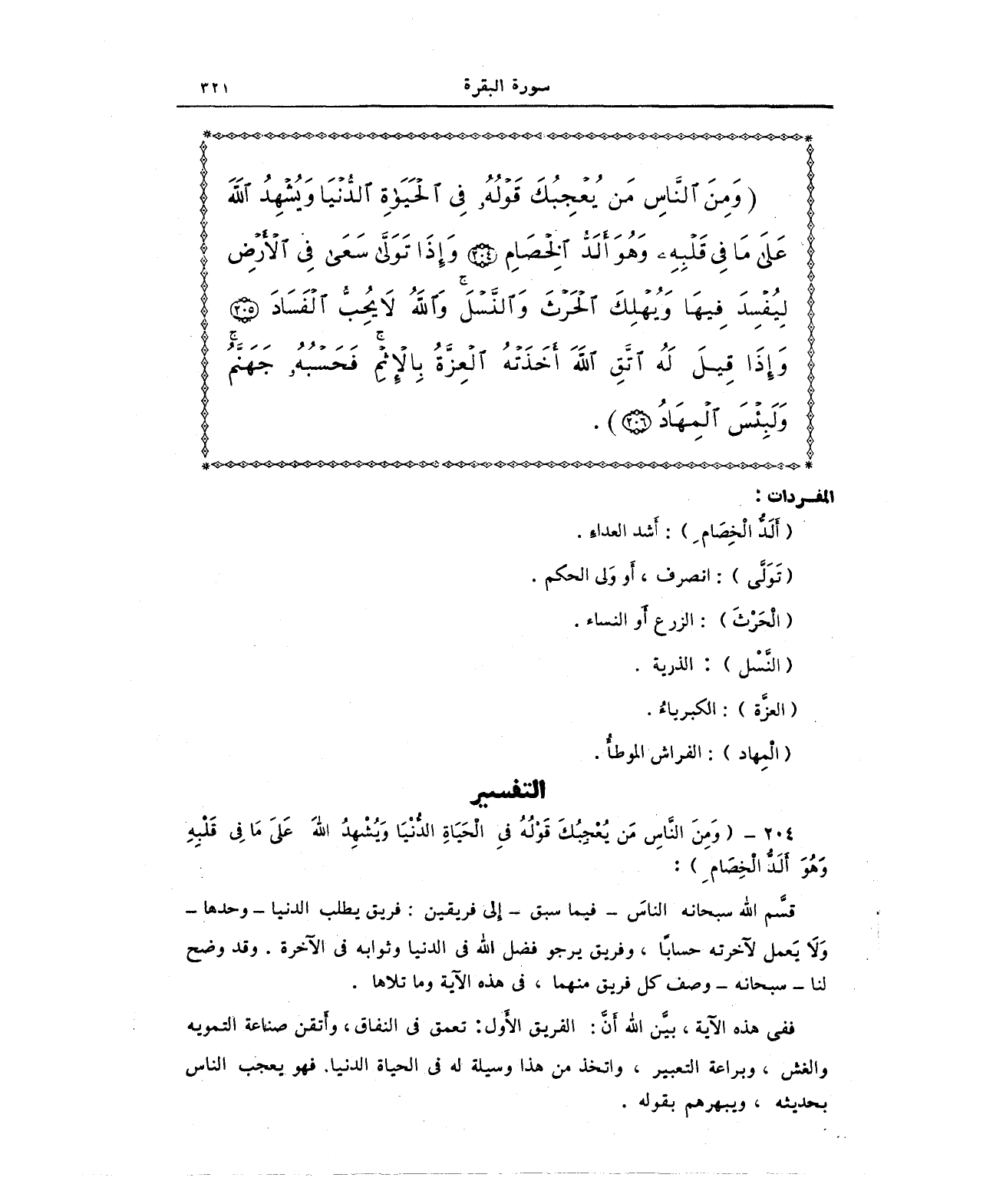 204 - {وَمِنَ النَّاسِ مَن يُعْجِبُكَ قَوْلُهُ فِي الْحَيَاةِ الدُّنْيَا وَيُشْهِدُ اللَّهَ عَلَى مَا فِي قَلْبِهِ وَهُوَ أَلَدُّ الْخِصَامِ}: