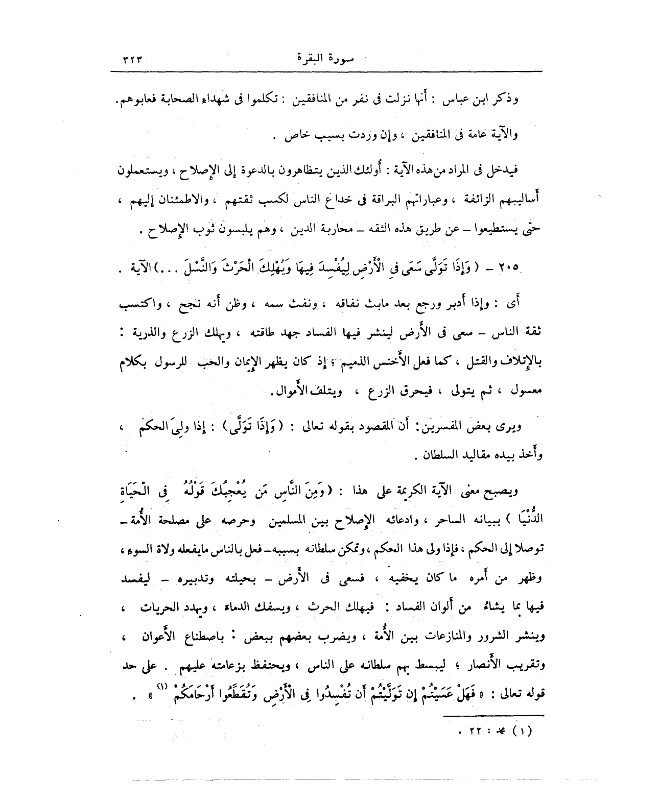205 - {وَإِذَا تَوَلَّى سَعَى فِي الْأَرْضِ لِيُفْسِدَ فِيهَا وَيُهْلِكَ الْحَرْثَ وَالنَّسْلَ ... } الآية.