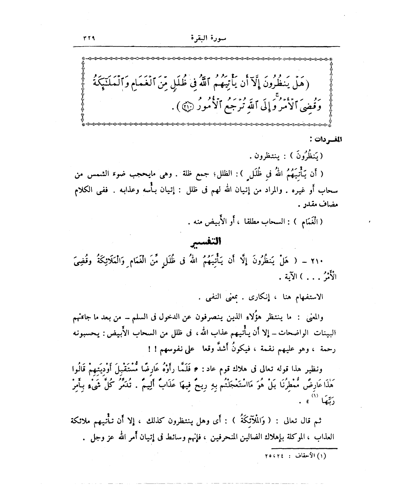 210 - {هَلْ يَنظُرُونَ إِلَّا أَن يَأْتِيَهُمُ اللَّهُ فِي ظُلَلٍ مِّنَ الْغَمَامِ وَالْمَلَائِكَةُ وَقُضِيَ الْأَمْرُ ... } الآية.
