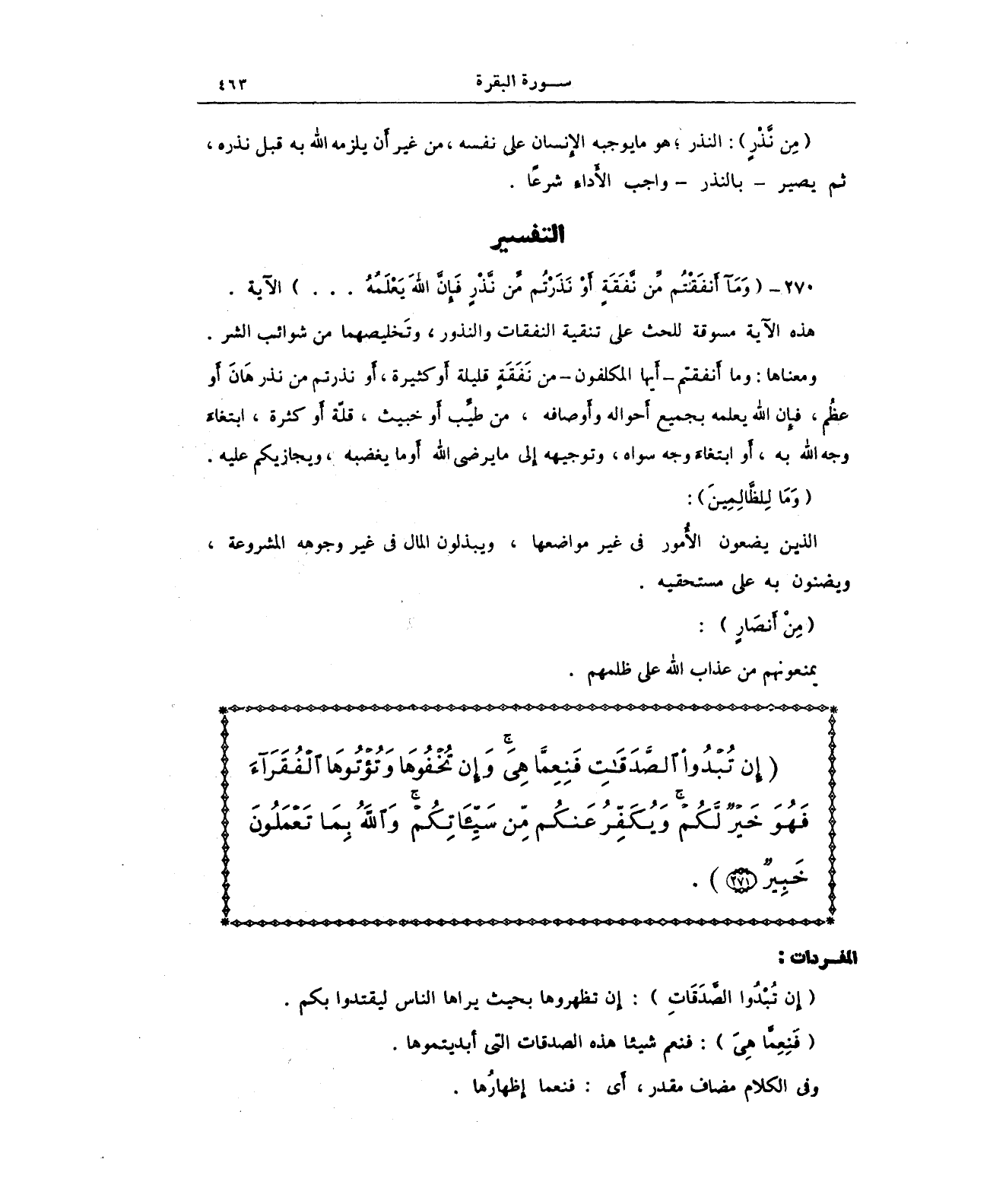 {إِنْ تُبْدُوا الصَّدَقَاتِ فَنِعِمَّا هِيَ وَإِنْ تُخْفُوهَا وَتُؤْتُوهَا الْفُقَرَاءَ فَهُوَ خَيْرٌ لَكُمْ وَيُكَفِّرُ عَنْكُمْ مِنْ سَيِّئَاتِكُمْ وَاللَّهُ بِمَا تَعْمَلُونَ خَبِيرٌ (271)}