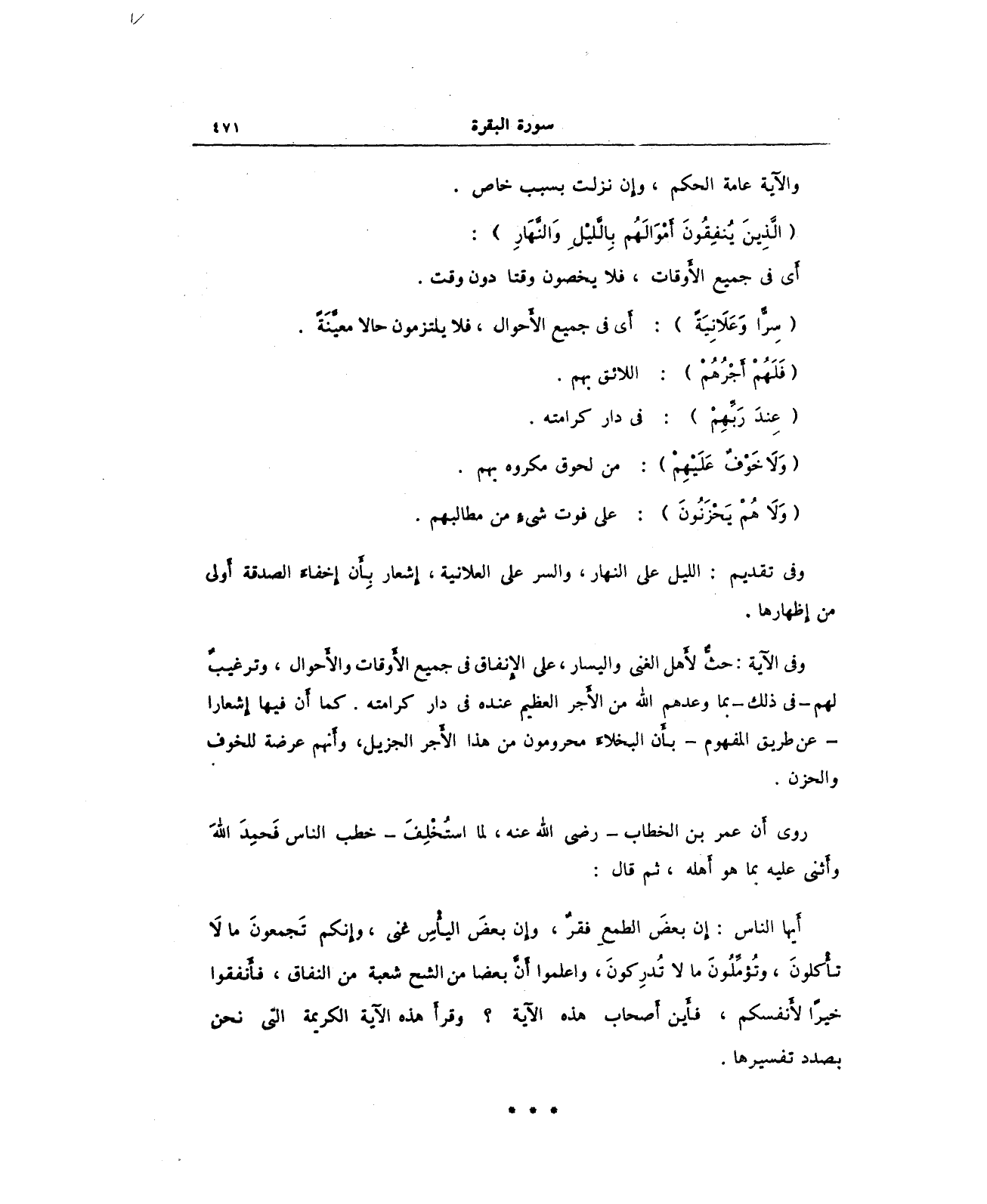 (الَّذِينَ يُنفِقُونَ أَمْوَالَهُم بِاللَّيْلِ وَالنَّهَارِ):