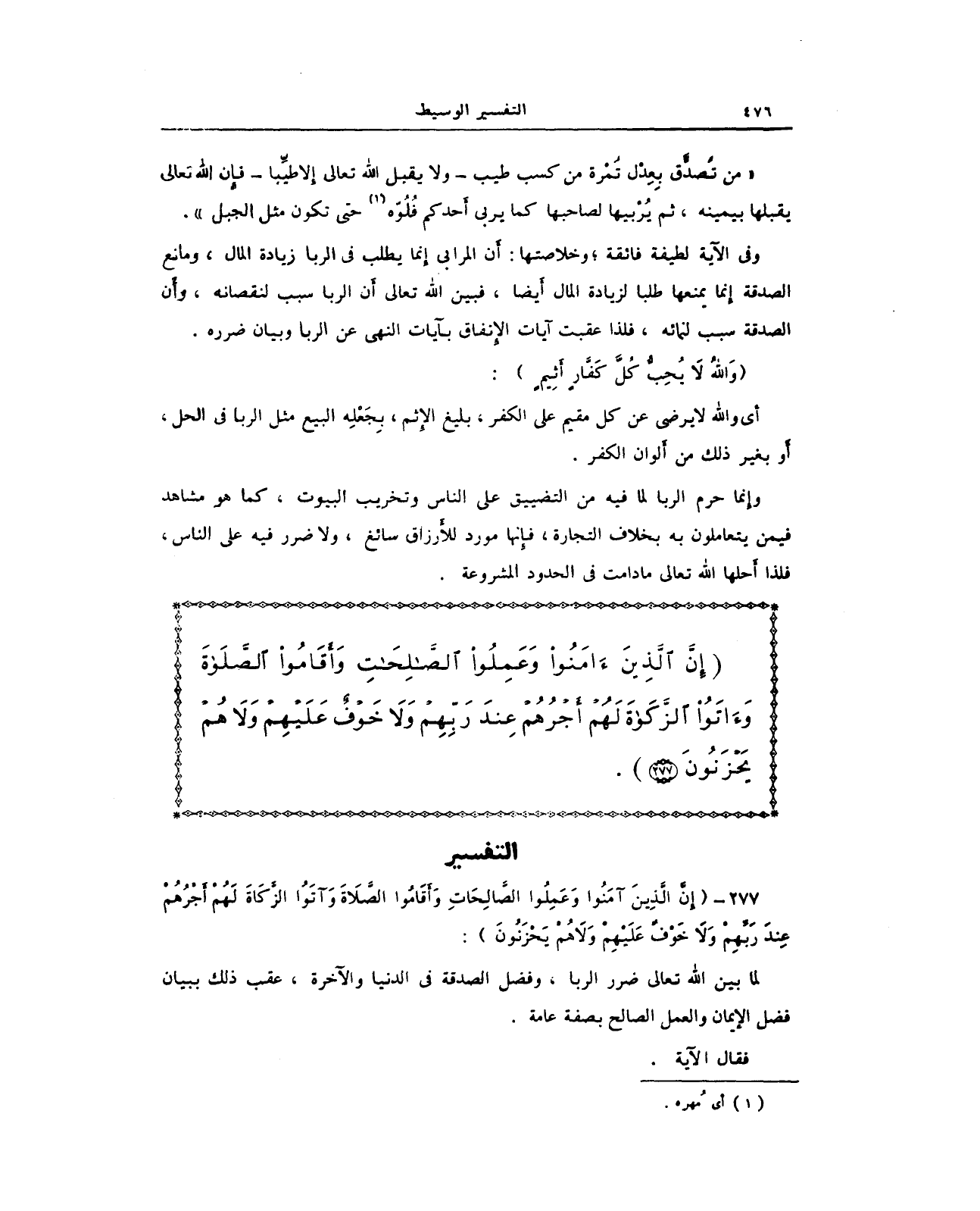 لما بين الله تعالى ضرر الربا، وفضل الصدقة في الدنيا والآخرة، عقب ذلك ببيان فضل الإيمان والعمل الصالح بصفة عامة.