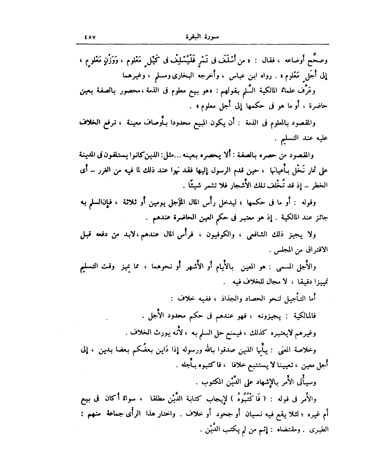 والأجل المسمى: هو المعين بالأيام أو الأشهر أو نحوهما، مما يميز وقت التسليم تمييزًا دقيقًا، لا مجال للخلاف فيه.
