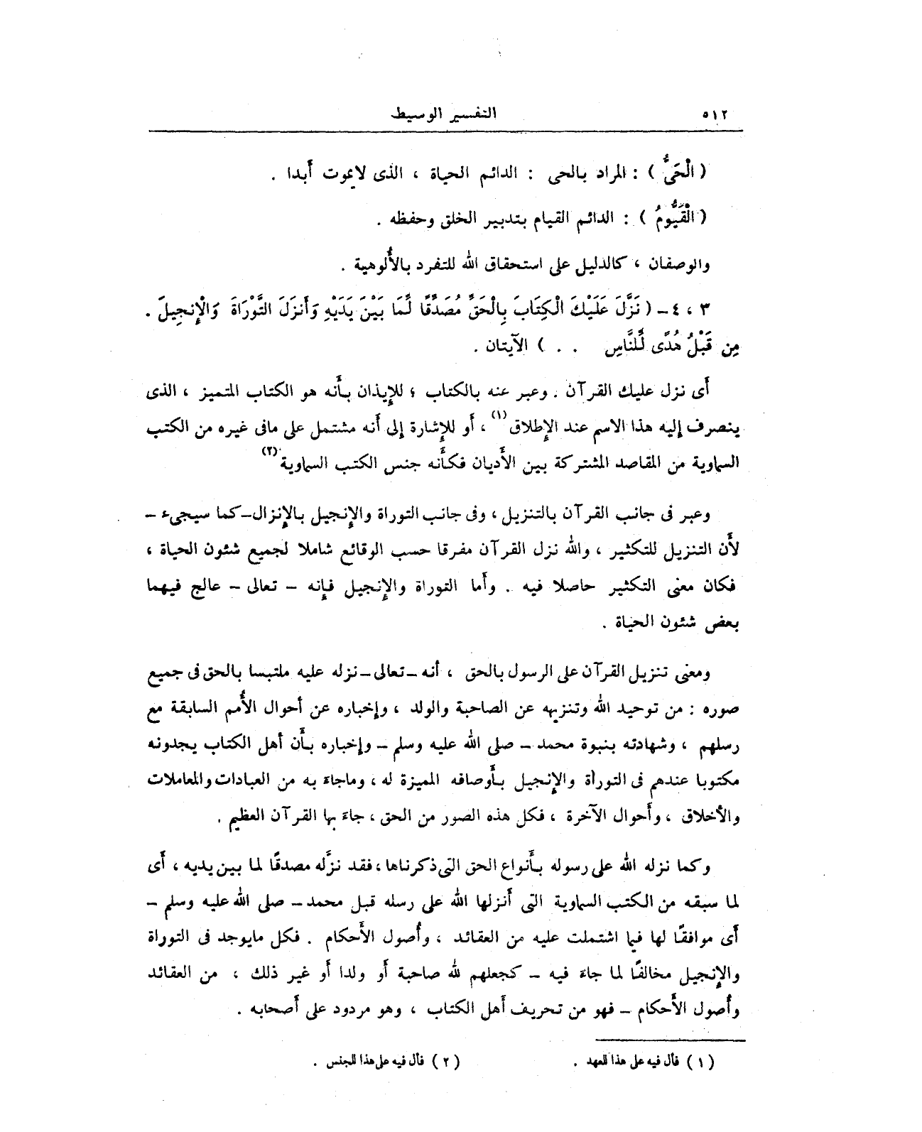 وعبر في جانب القرآن بالتنزيل، وفي جانب التوراة والإنجيل بالإنزال - كما سيجيء - لأن التنزيل للتكثير، والله نزل القرآن مفرقًا حسب الوقائع شاملًا لجميع شئون الحياة، فكان معنى التكثير حاصلا فيه. وأما التوراة والإنجيل فإنه - تعالى - عالج فيهما بعض شئون الحياة.