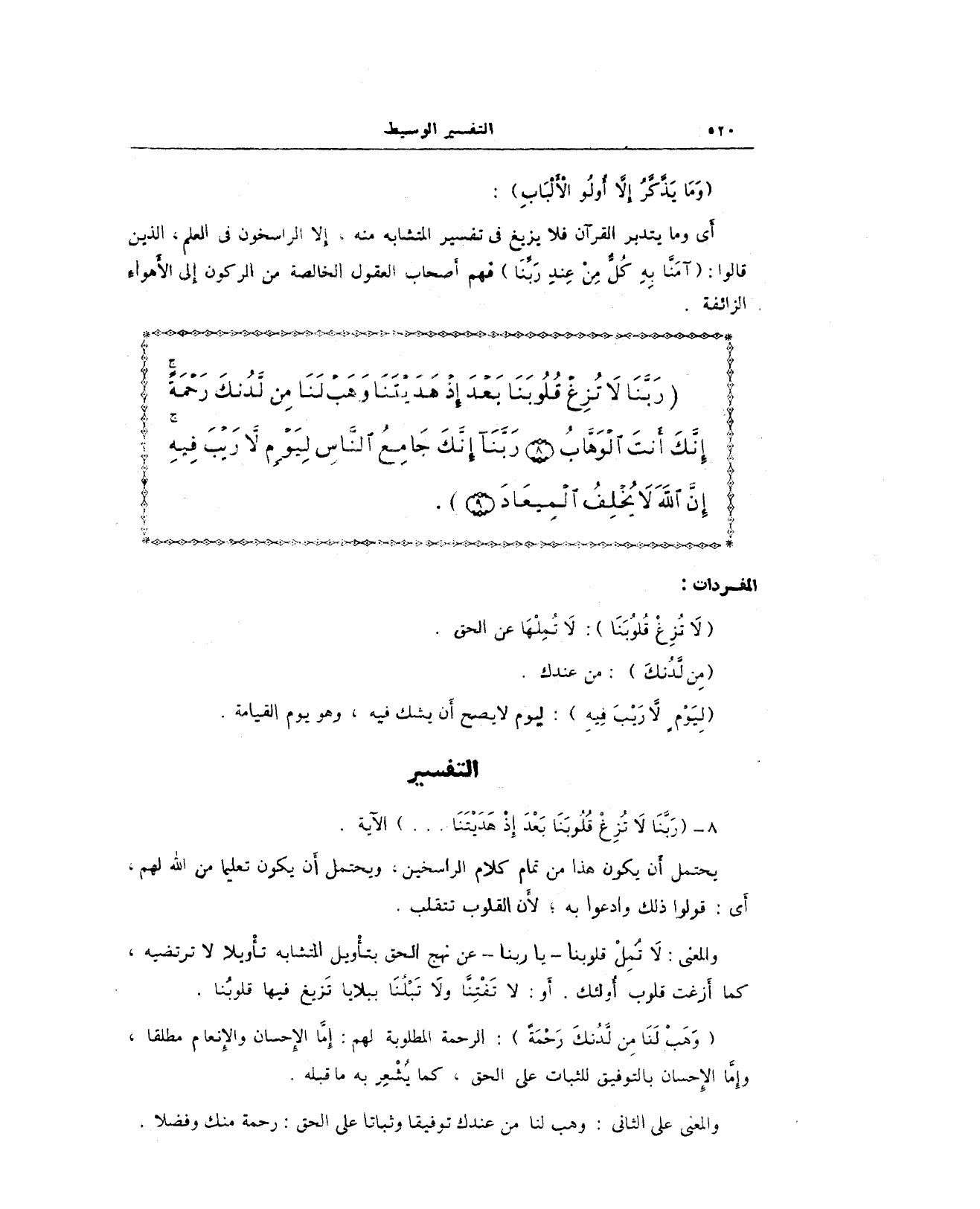 {رَبَّنَا لَا تُزِغْ قُلُوبَنَا بَعْدَ إِذْ هَدَيْتَنَا وَهَبْ لَنَا مِنْ لَدُنْكَ رَحْمَةً إِنَّكَ أَنْتَ الْوَهَّابُ (8) رَبَّنَا إِنَّكَ جَامِعُ النَّاسِ لِيَوْمٍ لَا رَيْبَ فِيهِ إِنَّ اللَّهَ لَا يُخْلِفُ الْمِيعَادَ (9)}