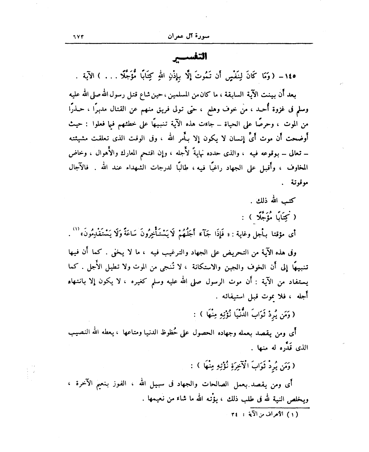 145 - {وَمَا كَانَ لِنَفْسٍ أَنْ تَمُوتَ إِلَّا بِإِذْنِ اللَّهِ كِتَابًا مُؤَجَّلًا. . .} الآية.