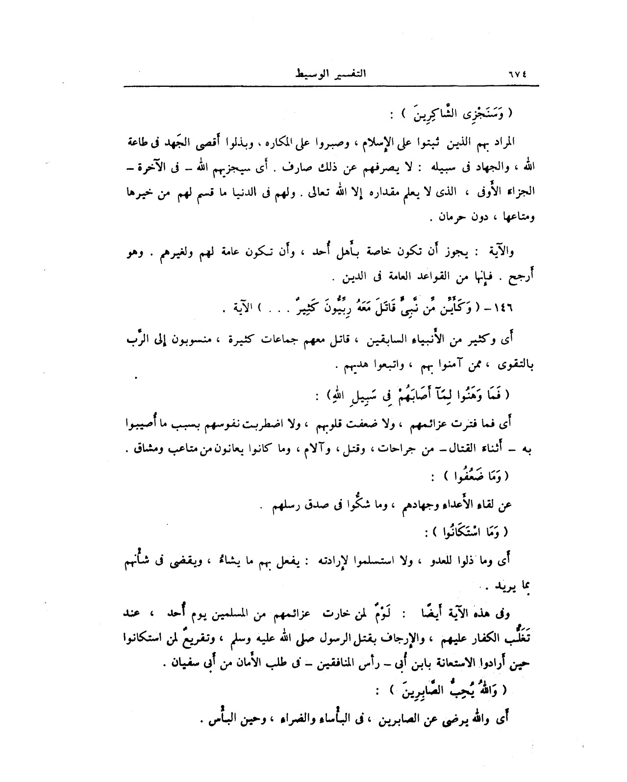 146 - {وَكَأَيِّنْ مِنْ نَبِيٍّ قَاتَلَ مَعَهُ رِبِّيُّونَ كَثِيرٌ. . .} الآية.