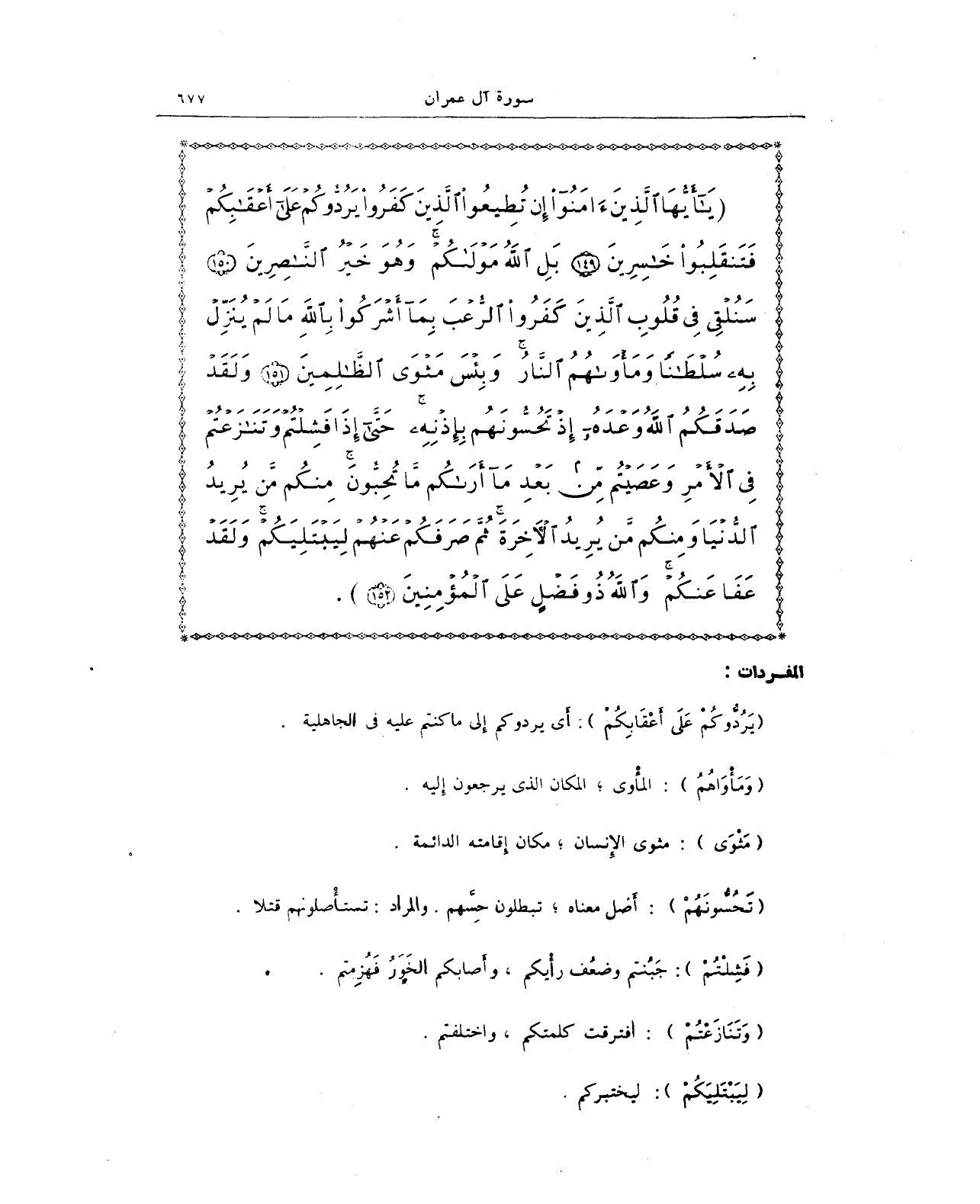 {يَرُدُّوكُمْ عَلَى أَعْقَابِكُمْ}: أي يردوكم إلى ما كنتم عليه في الجاهلية.