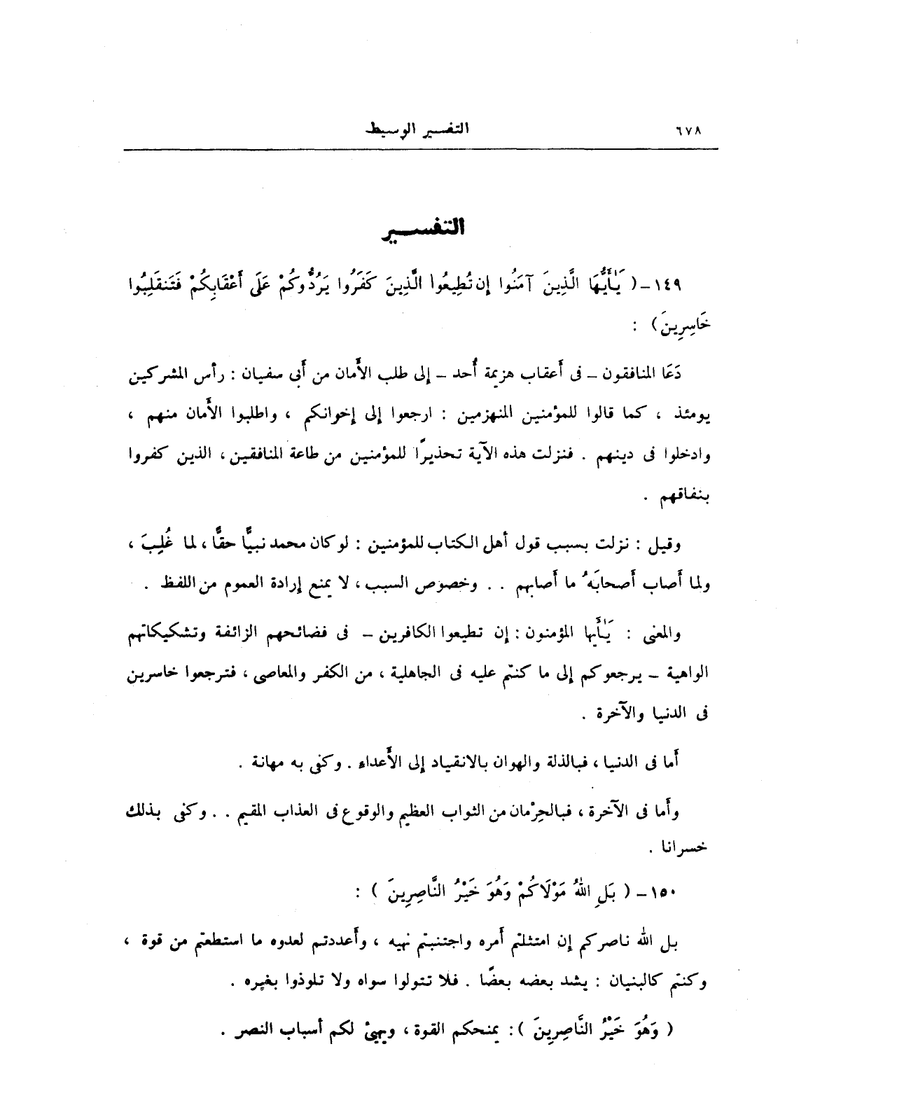 149 - {يَا أَيُّهَا الَّذِينَ آمَنُوا إِنْ تُطِيعُوا الَّذِينَ كَفَرُوا يَرُدُّوكُمْ عَلَى أَعْقَابِكُمْ فَتَنْقَلِبُوا خَاسِرِينَ}: