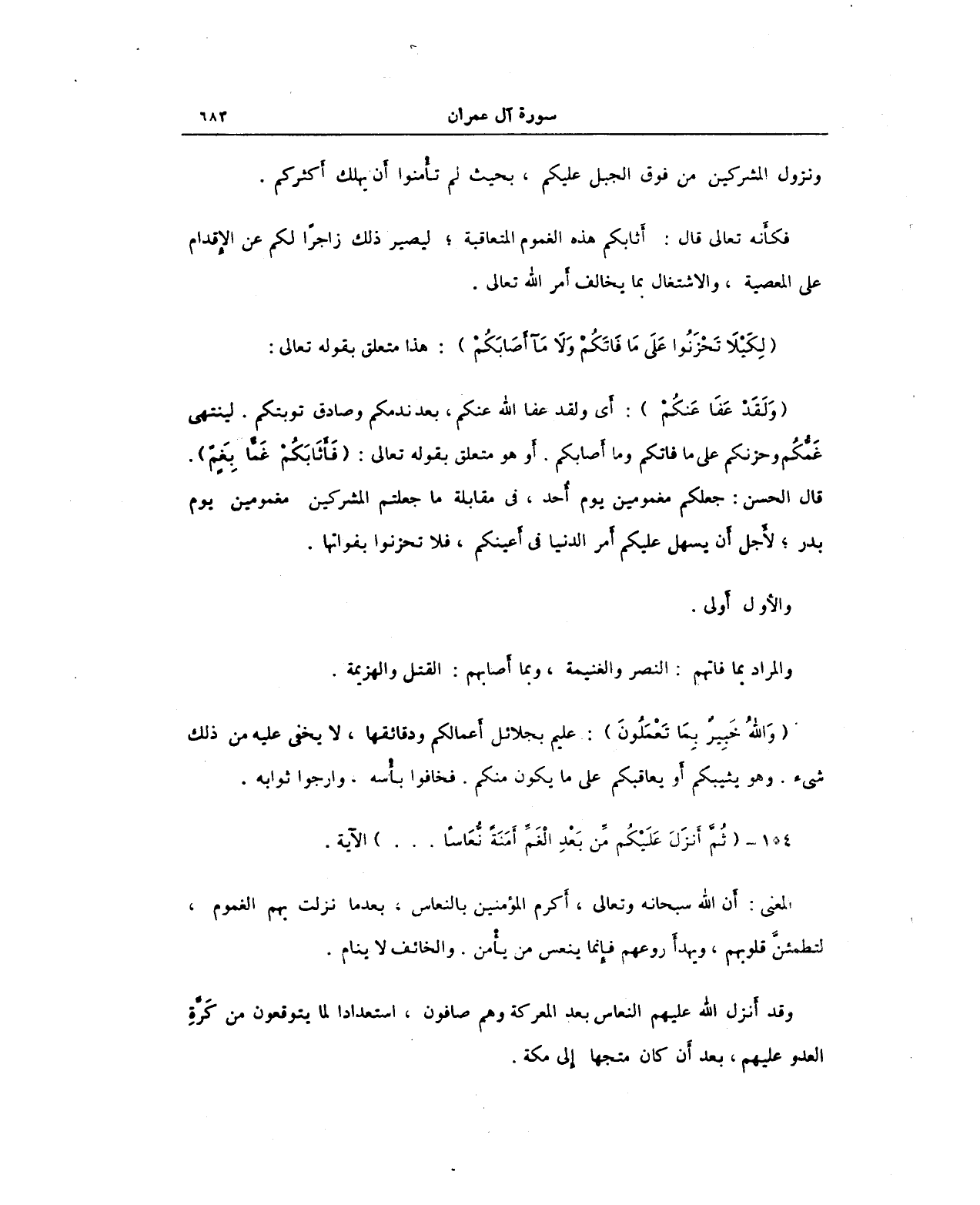 134 - {ثُمَّ أَنْزَلَ عَلَيْكُمْ مِنْ بَعْدِ الْغَمِّ أَمَنَةً نُعَاسًا. . .} الآية.