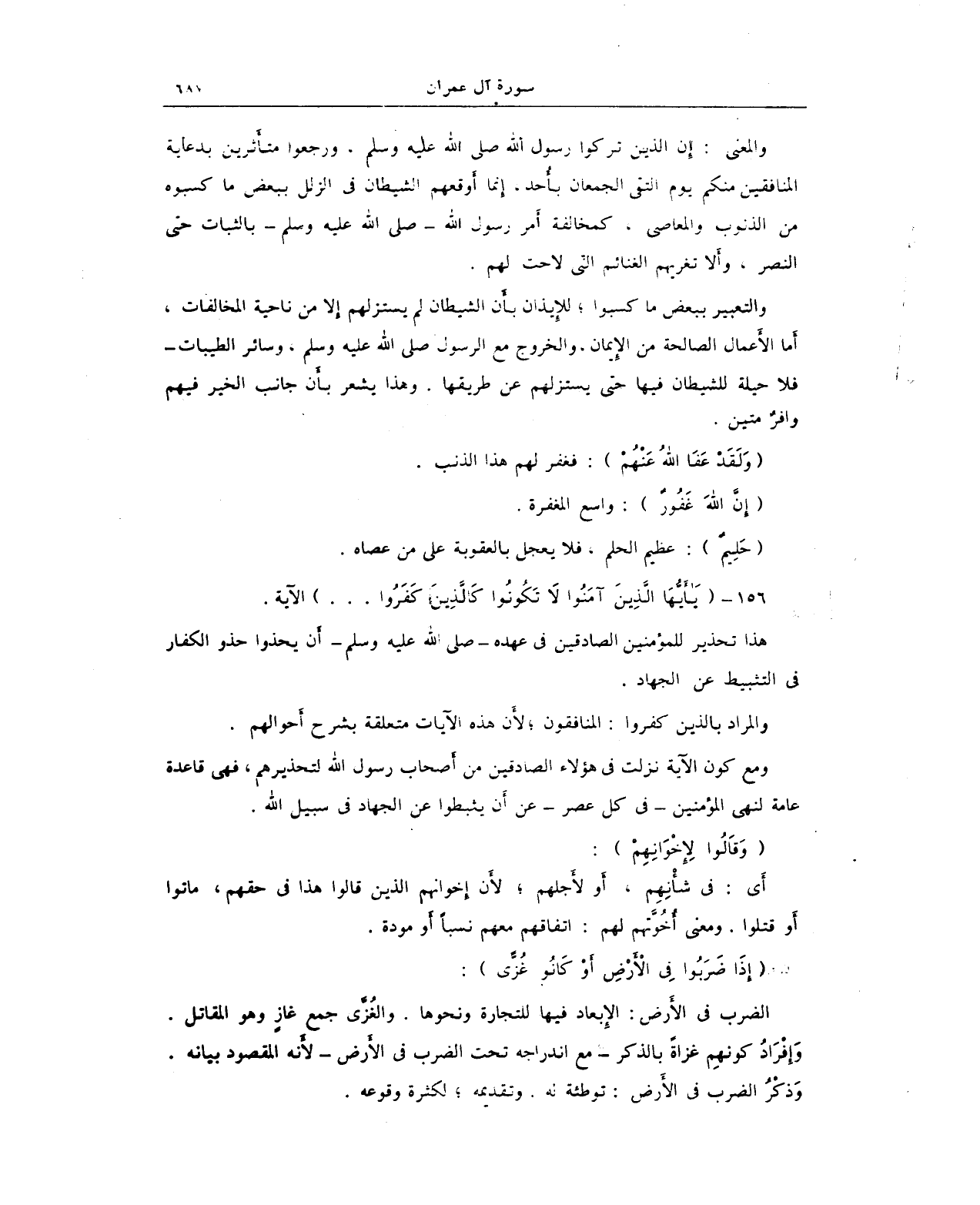 156 - {يَا أَيُّهَا الَّذِينَ آمَنُوا لَا تَكُونُوا كَالَّذِينَ كَفَرُوا ... } الآية.