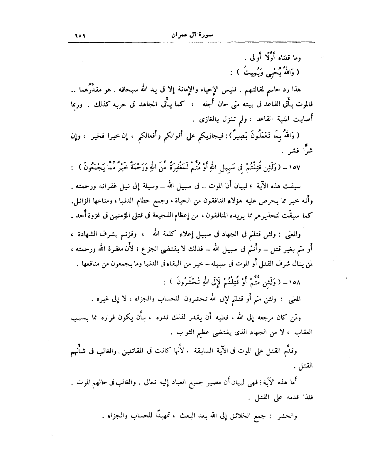 158 - {وَلَئِنْ مُتُّمْ أَوْ قُتِلْتُمْ لَإِلَى اللَّهِ تُحْشَرُونَ}: