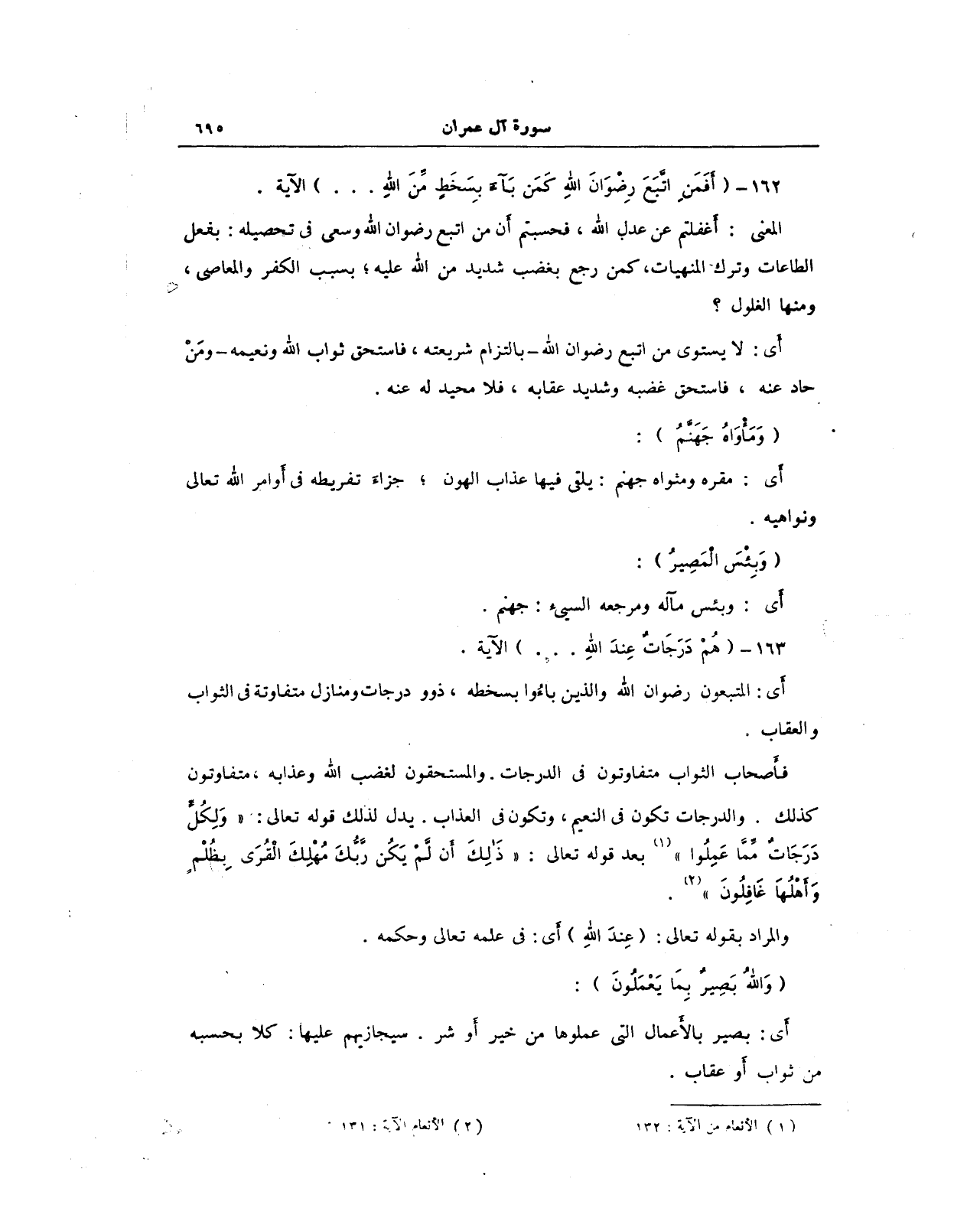 162 - {أَفَمَنِ اتَّبَعَ رِضْوَانَ اللَّهِ كَمَنْ بَاءَ بِسَخَطٍ مِنَ اللَّهِ ... } الآية.