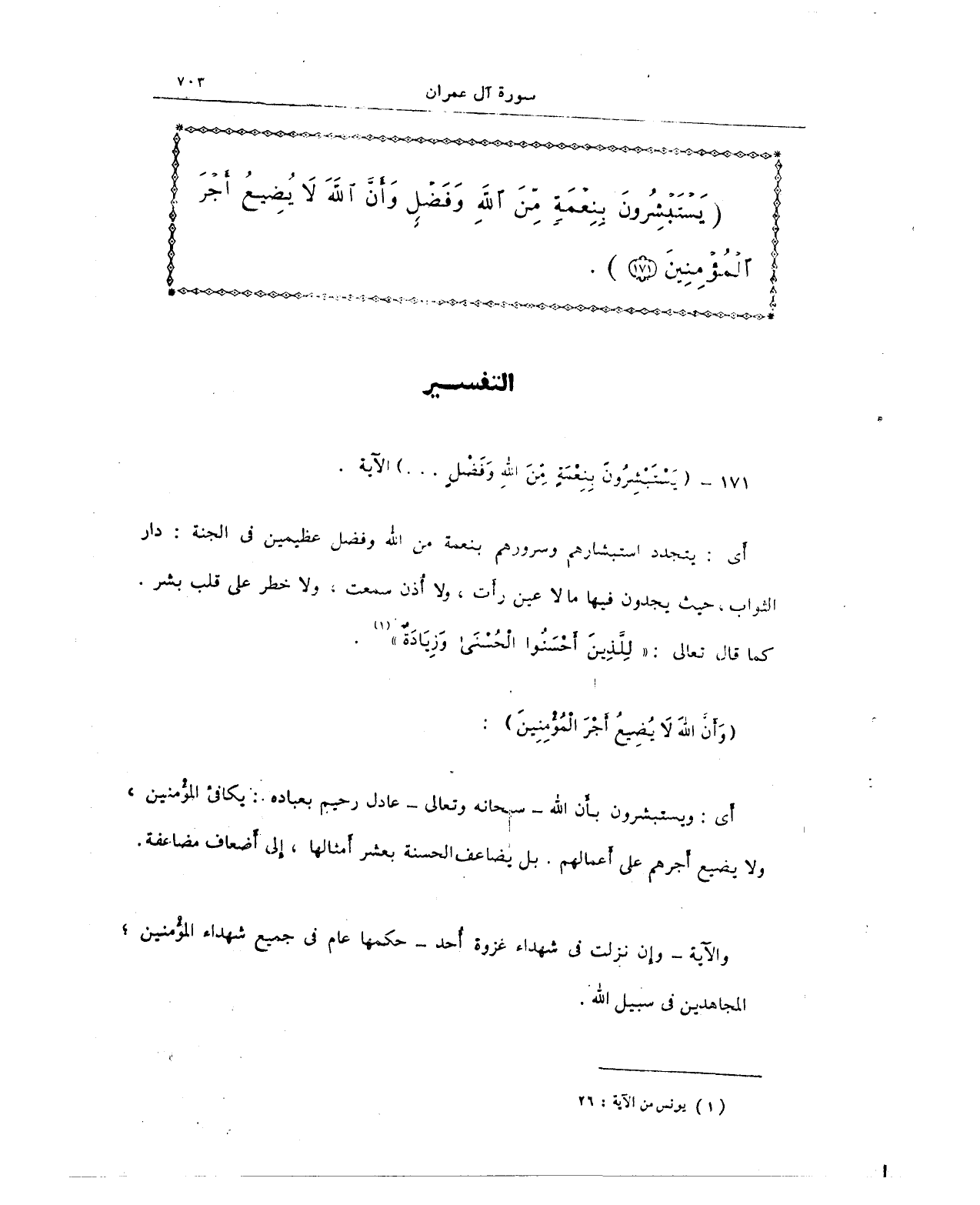 171 - {يَسْتَبْشِرُونَ بِنِعْمَةٍ مِنَ اللَّهِ وَفَضْلٍ ... } الآية.