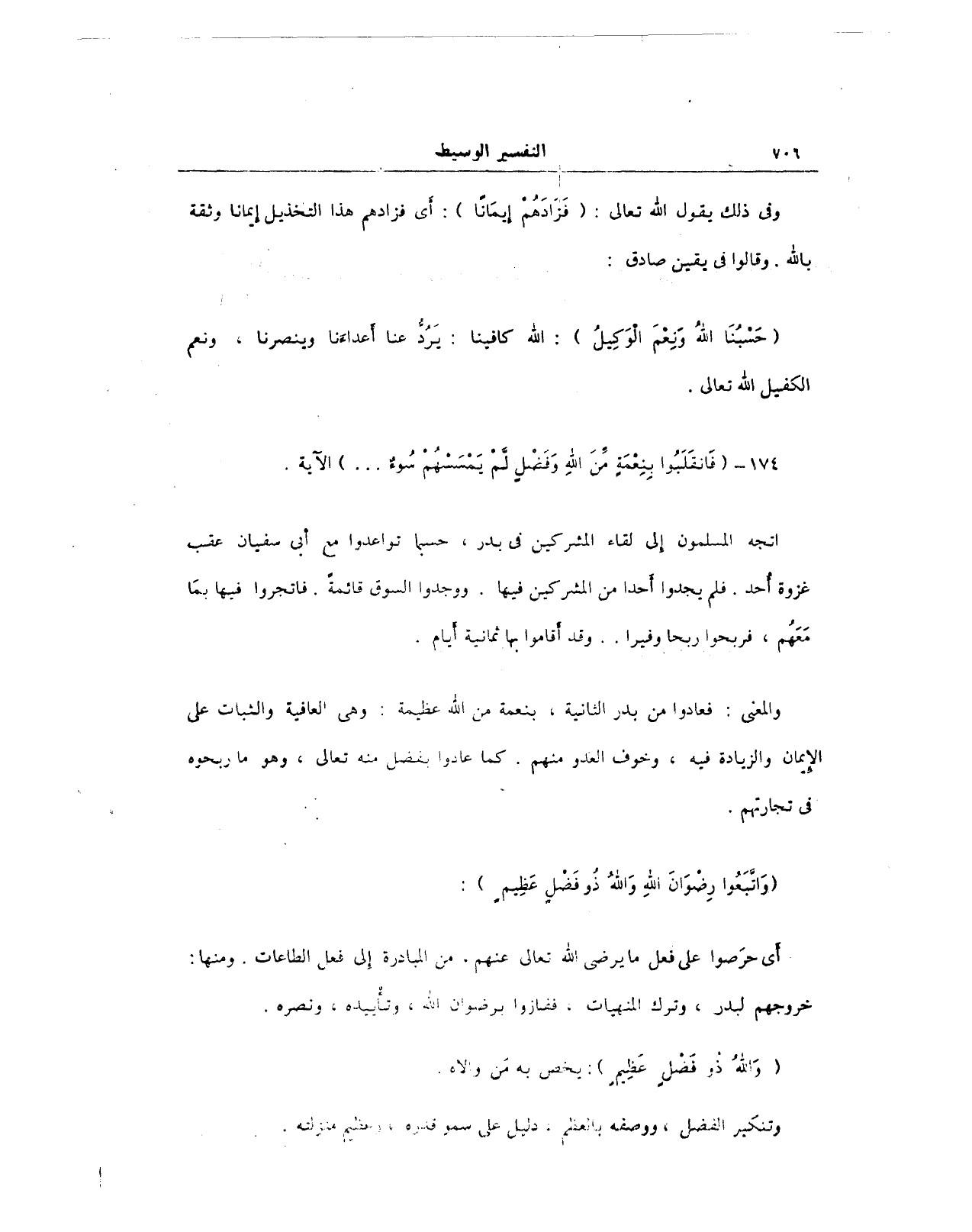 174 - {فَانْقَلَبُوا بِنِعْمَةٍ مِنَ اللَّهِ وَفَضْلٍ لَمْ يَمْسَسْهُمْ سُوءٌ ... } الآية.