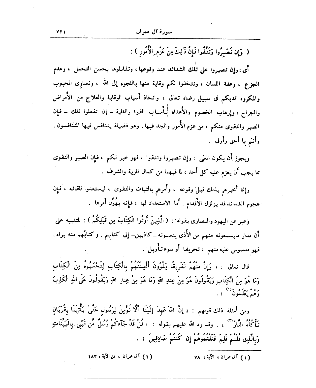 قال تعالى: {وَإِنَّ مِنْهُمْ لَفَرِيقًا يَلْوُونَ أَلْسِنَتَهُمْ بِالْكِتَابِ لِتَحْسَبُوهُ مِنَ الْكِتَابِ وَمَا هُوَ مِنَ الْكِتَابِ وَيَقُولُونَ هُوَ مِنْ عِنْدِ اللَّهِ وَمَا هُوَ مِنْ عِنْدِ اللَّهِ وَيَقُولُونَ عَلَى اللَّهِ الْكَذِبَ وَهُمْ يَعْلَمُونَ} (¬1) ".