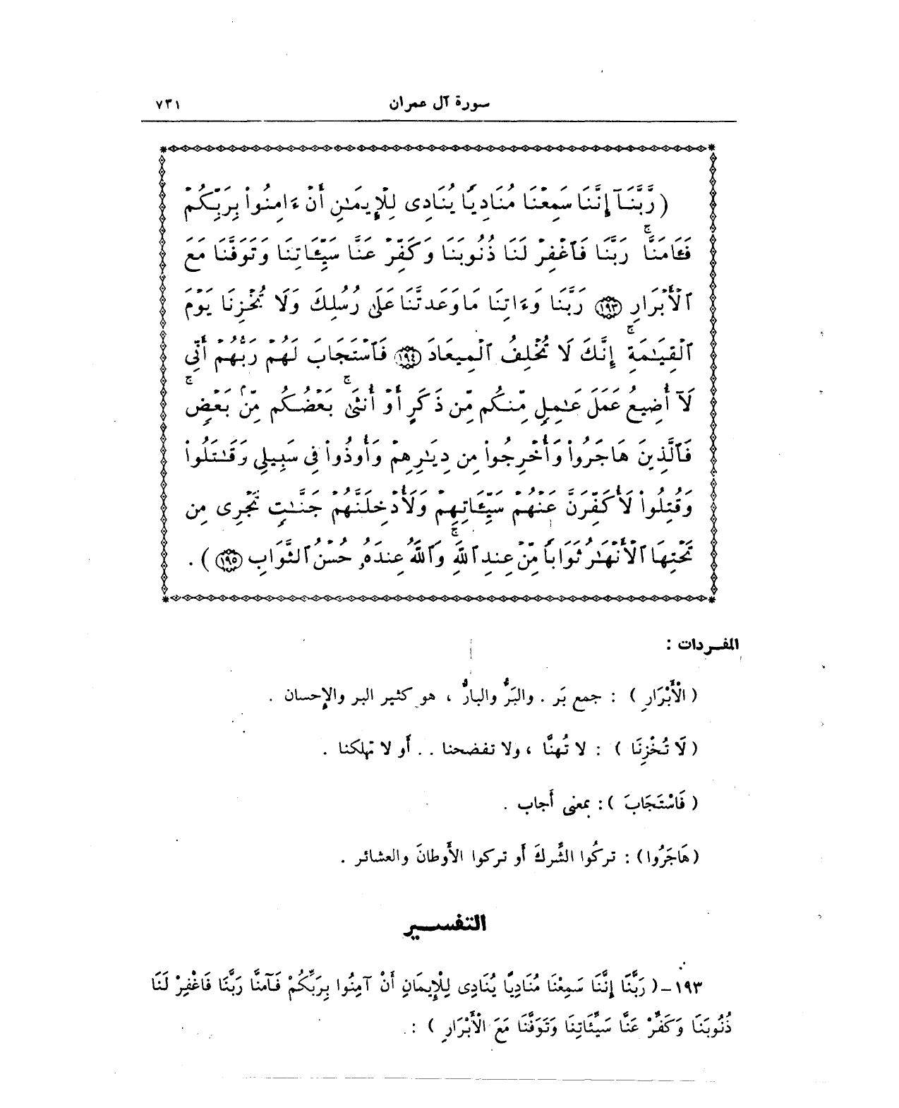 193 - {رَبَّنَا إِنَّنَا سَمِعْنَا مُنَادِيًا يُنَادِي لِلْإِيمَانِ أَنْ آمِنُوا بِرَبِّكُمْ فَآمَنَّا رَبَّنَا فَاغْفِرْ لَنَا ذُنُوبَنَا وَكَفِّرْ عَنَّا سَيِّئَاتِنَا وَتَوَفَّنَا مَعَ الْأَبْرَارِ}: