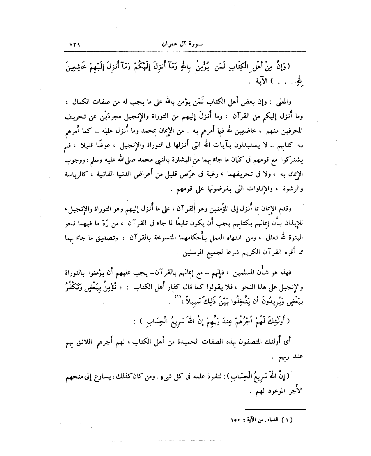 {وَإِنَّ مِنْ أَهْلِ الْكِتَابِ لَمَنْ يُؤْمِنُ بِاللَّهِ وَمَا أُنْزِلَ إِلَيْكُمْ وَمَا أُنْزِلَ إِلَيْهِمْ خَاشِعِينَ لِلَّهِ ... } الآية.
