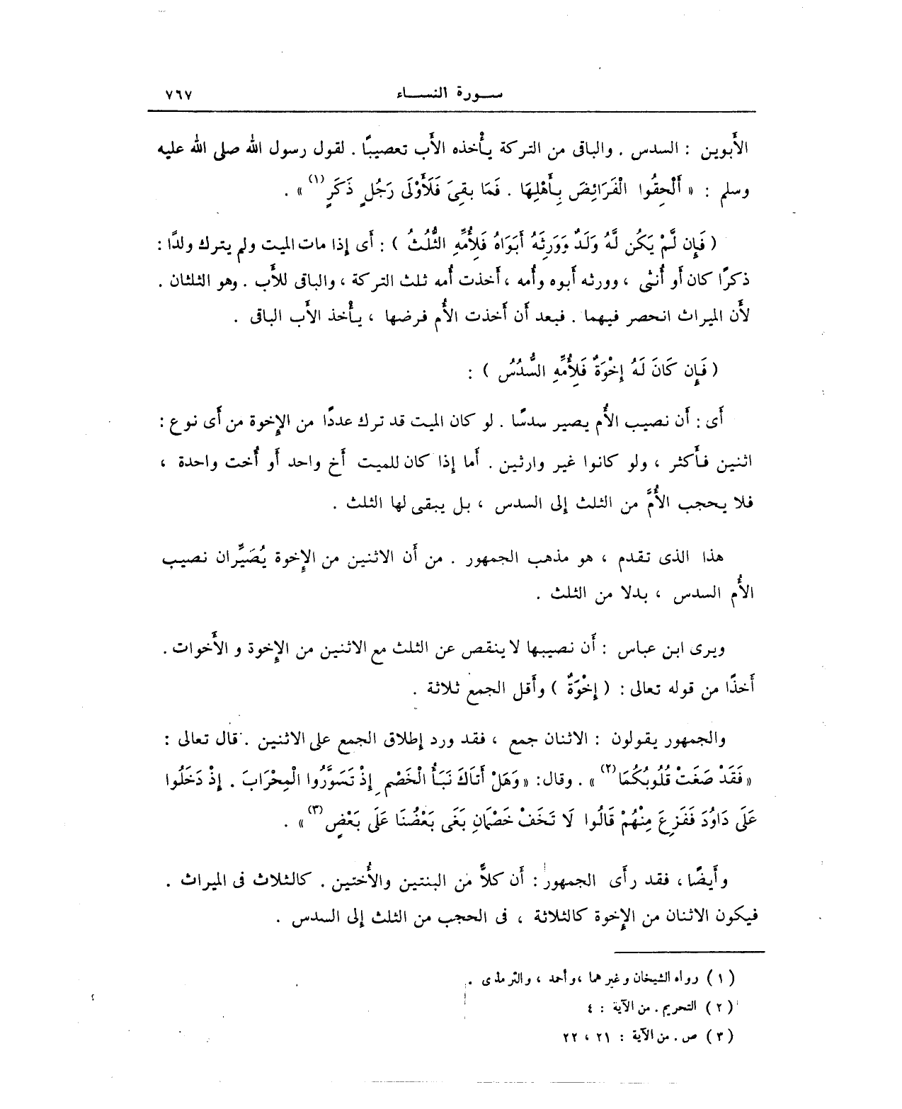هذا الذي تقدم، هو مذهب الجمهور. من أن الاثنين من الإِخوة يُصيِّران نصيب الأم السدس، بدلا من الثلث.