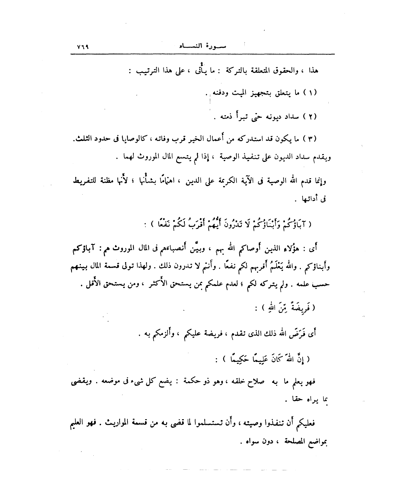 فعليكم أن تنفذوا وصيته، وأَن تستسلموا لما قضى به من قسمة المواريث. فهو العليم بمواضع المصلحة، دون سواه.