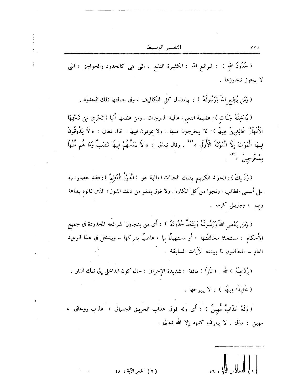 {وَمَنْ يُطِعِ اللَّهَ وَرَسُولَهُ}: بامتثال كل التكاليف، وفي جملتها تلك الحدود.