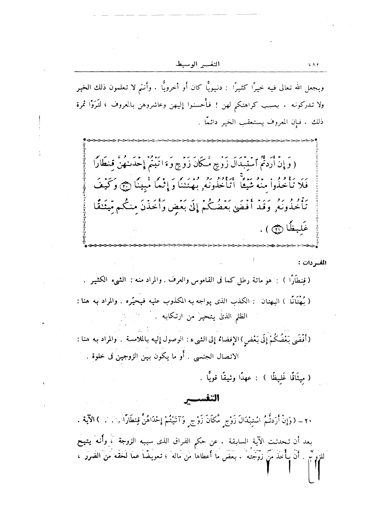 20 - {وَإِنْ أَرَدْتُمُ اسْتِبْدَالَ زَوْجٍ مَكَانَ زَوْجٍ وَآتَيْتُمْ إِحْدَاهُنَّ قِنْطَارًا ... } الآية.