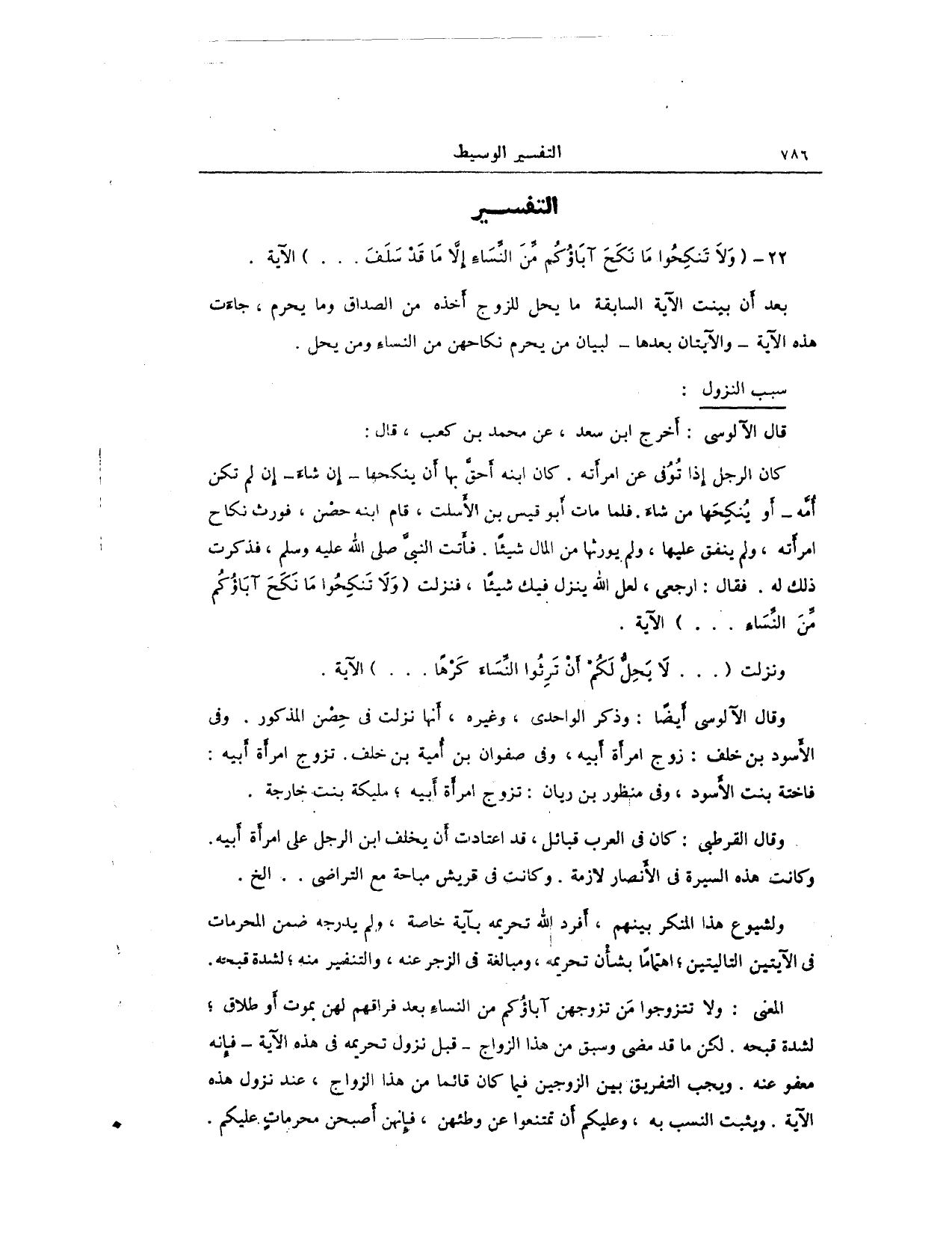 22 - {وَلَا تَنْكِحُوا مَا نَكَحَ آبَاؤُكُمْ مِنَ النِّسَاءِ إِلَّا مَا قَدْ سَلَفَ ... } الآية.