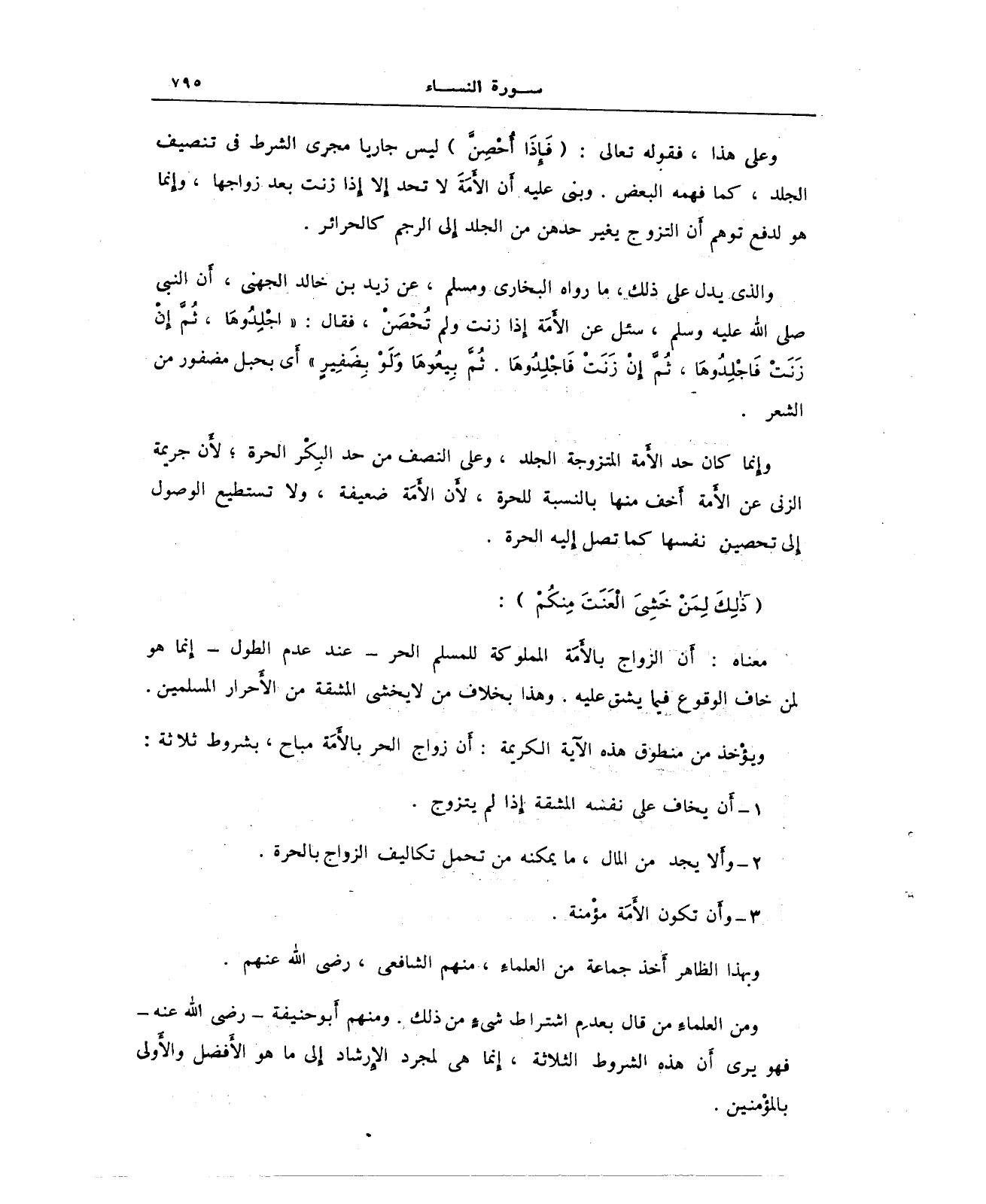 ويؤخذ من منطوق هذه الآية الكريمة: أن زواج الحر بالأمة مباح، بشروط ثلاثة: