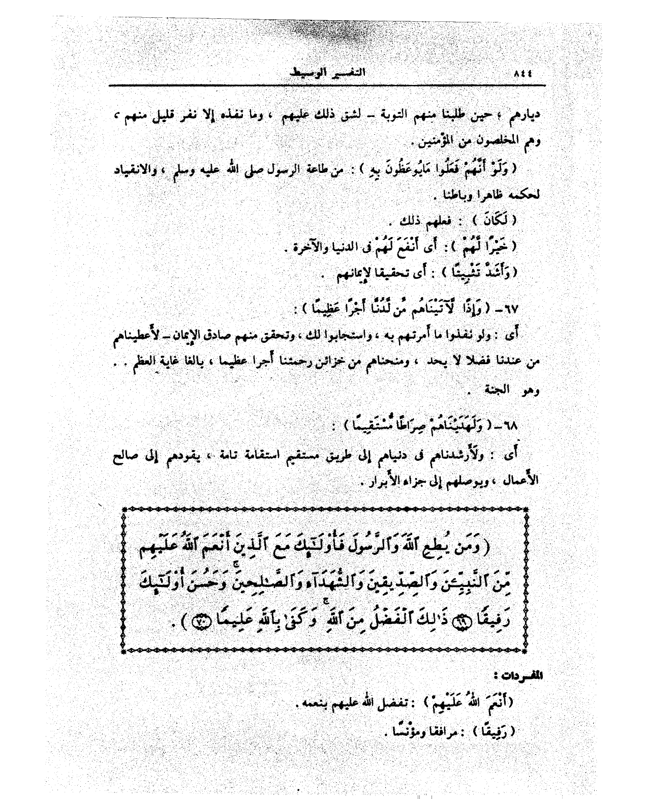 {وَمَنْ يُطِعِ اللَّهَ وَالرَّسُولَ فَأُولَئِكَ مَعَ الَّذِينَ أَنْعَمَ اللَّهُ عَلَيْهِمْ مِنَ النَّبِيِّينَ وَالصِّدِّيقِينَ وَالشُّهَدَاءِ وَالصَّالِحِينَ وَحَسُنَ أُولَئِكَ رَفِيقًا (69) ذَلِكَ الْفَضْلُ مِنَ اللَّهِ وَكَفَى بِاللَّهِ عَلِيمًا (70)}.