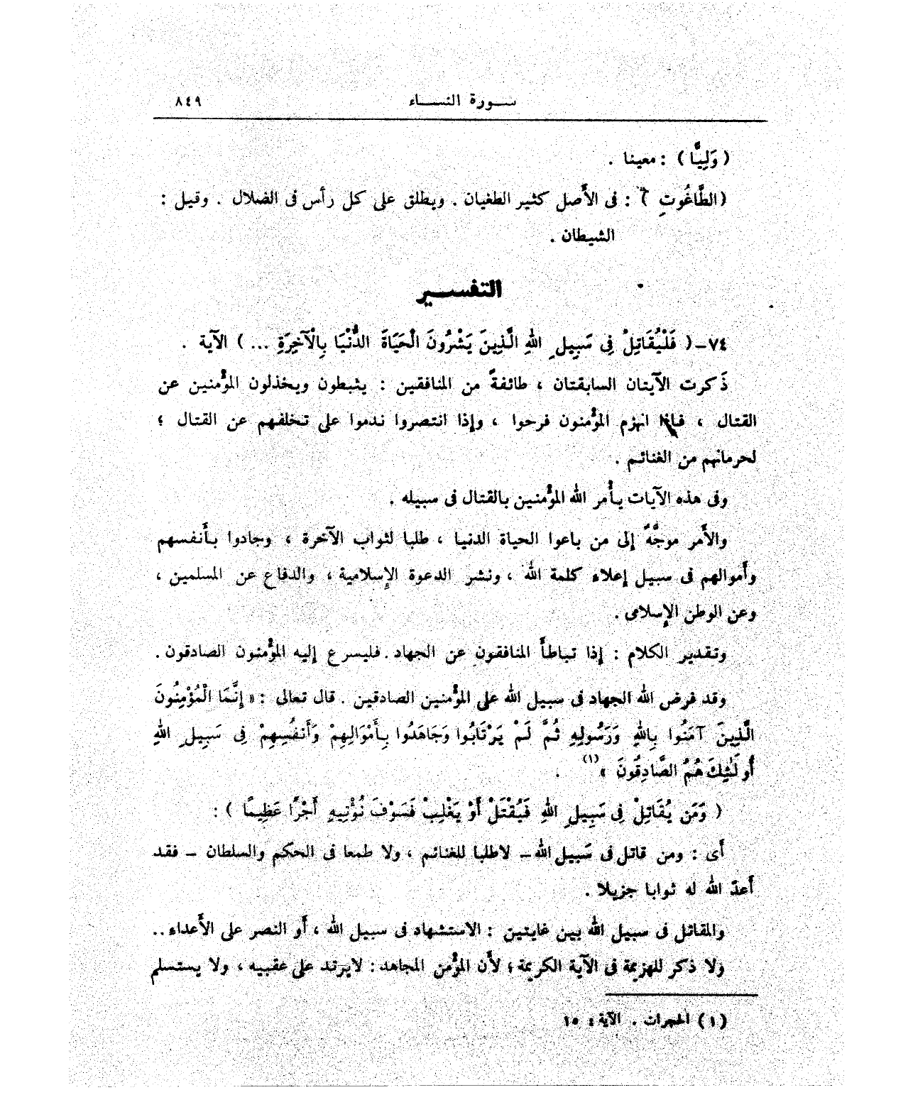 74 - {فَلْيُقَاتِلْ فِي سَبِيلِ اللَّهِ الَّذِينَ يَشْرُونَ الْحَيَاةَ الدُّنْيَا بِالْآخِرَةِ ... } الآية.
