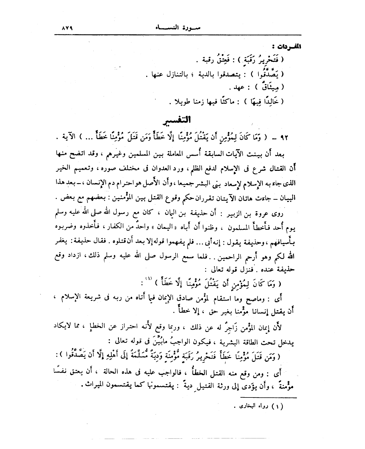 {وَمَا كَانَ لِمُؤْمِنٍ أَنْ يَقْتُلَ مُؤْمِنًا إِلَّا خَطَأً} (¬1):