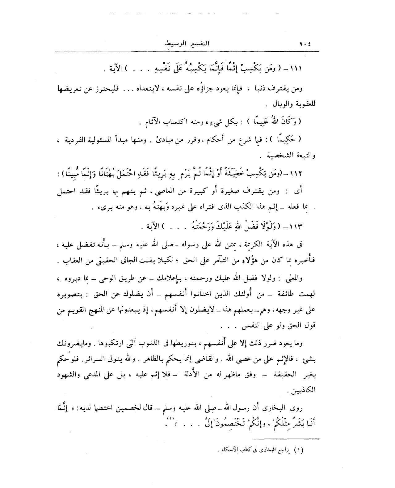 111 - {وَمَنْ يَكْسِبْ إِثْمًا فَإِنَّمَا يَكْسِبُهُ عَلَى نَفْسِهِ ... } الآية.