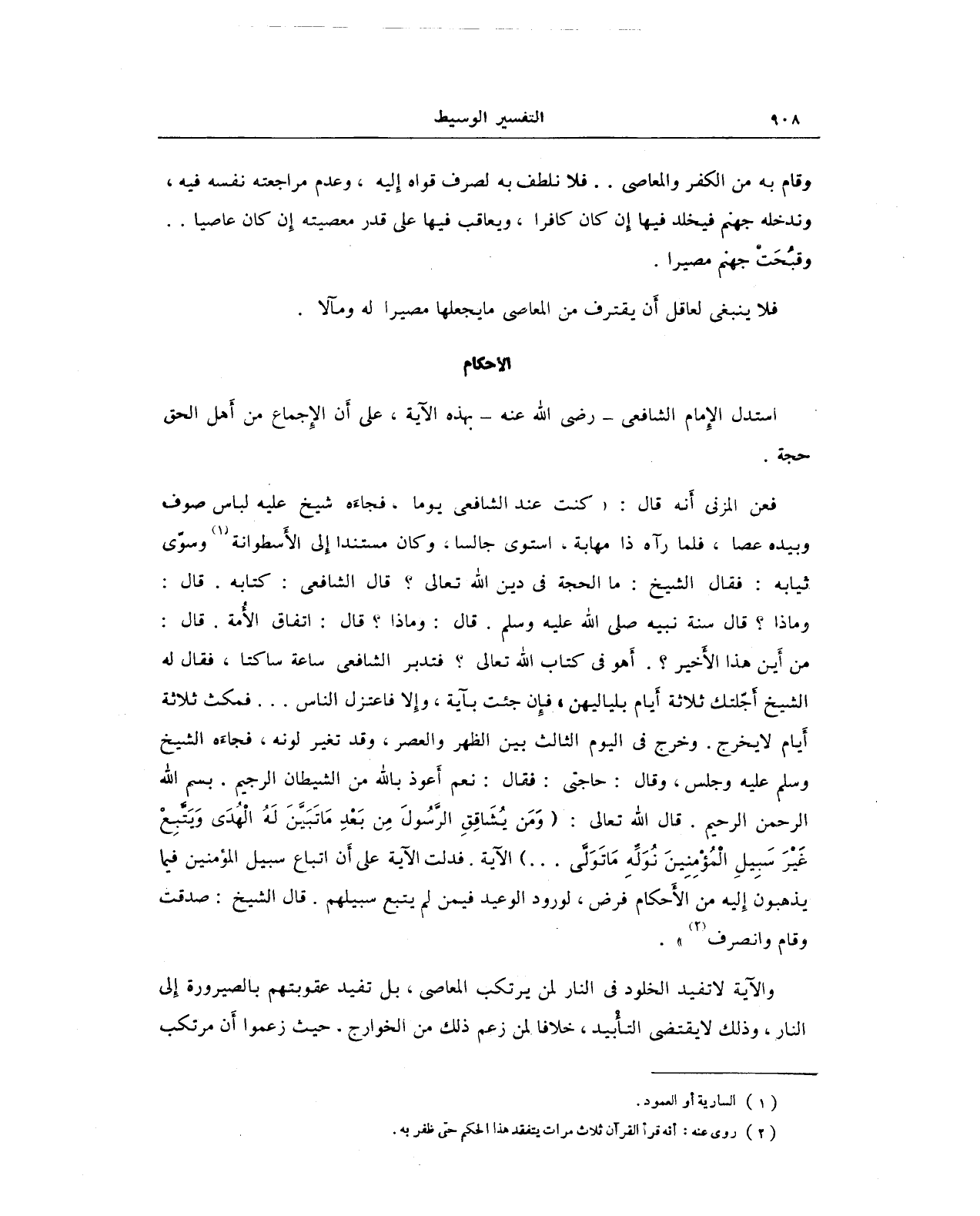 استدل الإِمام الشافعي - رضي الله عنه - بهذه الآية، على أَن الإِجماع من أَهل الحق حجة.