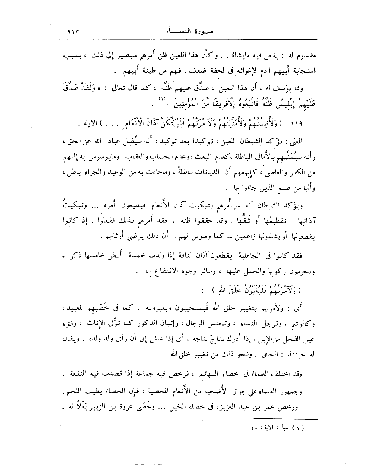 119 - {وَلَأُضِلَّنَّهُمْ وَلَأُمَنِّيَنَّهُمْ وَلَآمُرَنَّهُمْ فَلَيُبَتِّكُنَّ آذَانَ الْأَنْعَامِ ... } الآية.