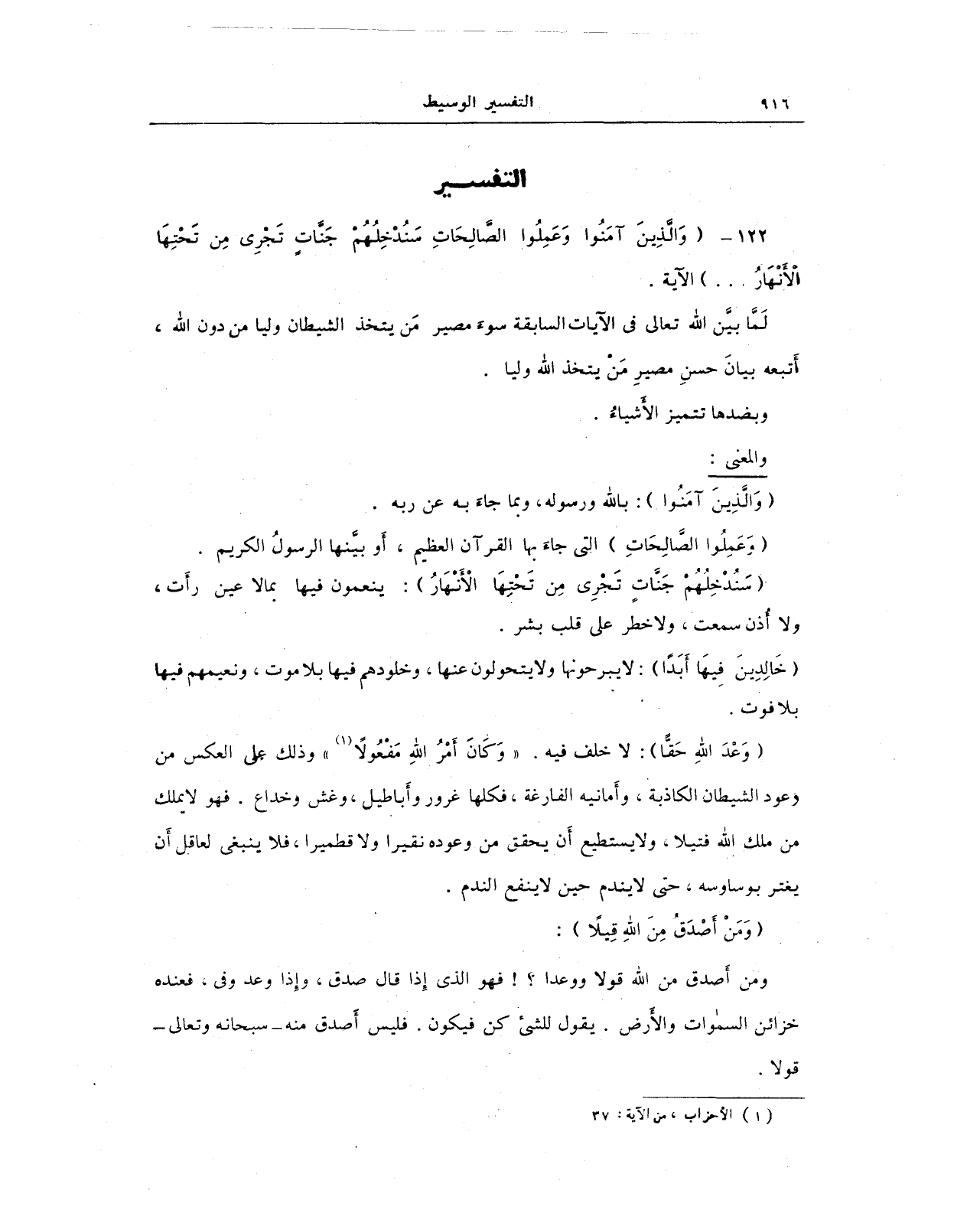 122 - {وَالَّذِينَ آمَنُوا وَعَمِلُوا الصَّالِحَاتِ سَنُدْخِلُهُمْ جَنَّاتٍ تَجْرِي مِنْ تَحْتِهَا الْأَنْهَارُ ... } الآية.