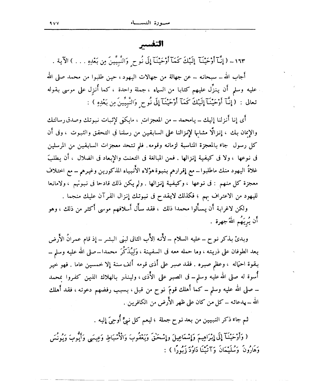 163 - {إِنَّا أَوْحَيْنَا إِلَيْكَ كَمَا أَوْحَيْنَا إِلَى نُوحٍ وَالنَّبِيِّينَ مِنْ بَعْدِهِ ... ) الآية.