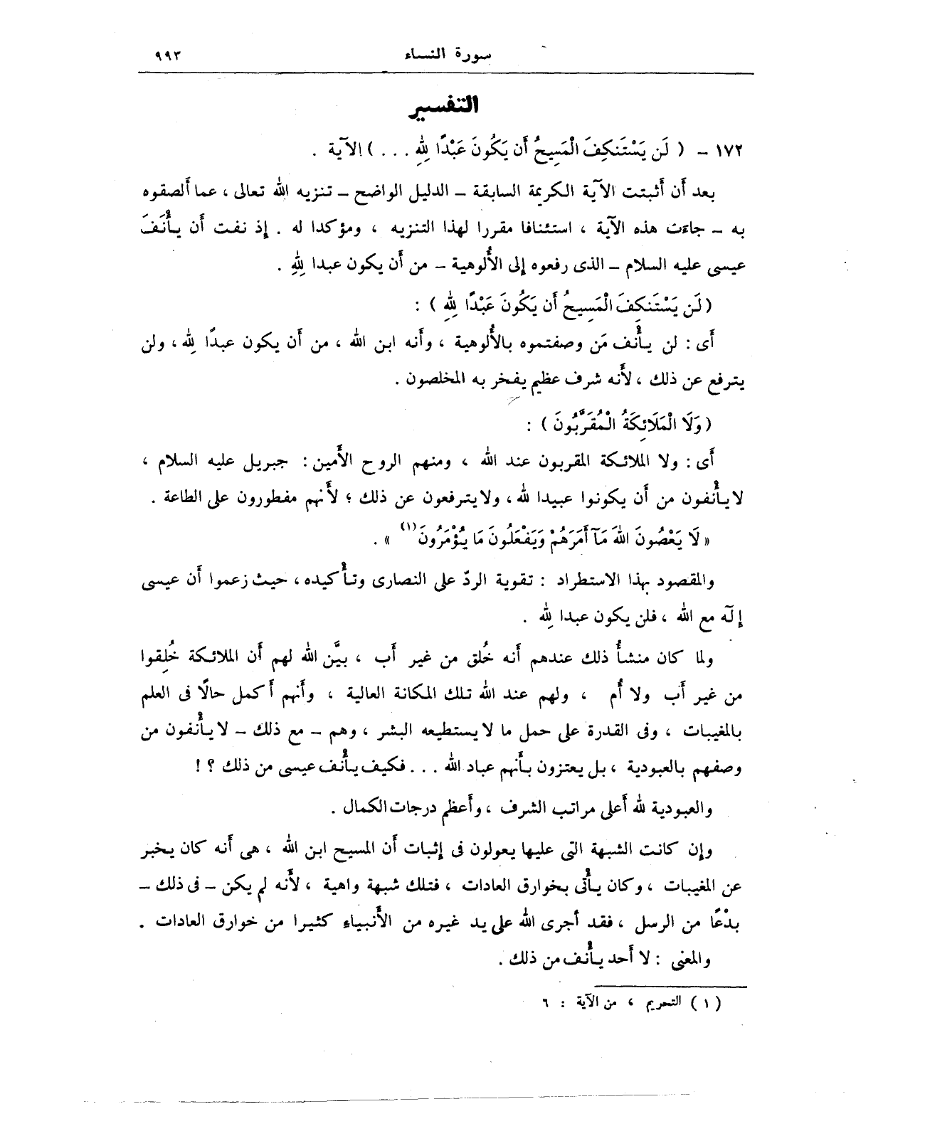 172 - (لَنْ يَسْتَنكِفَ الْمَسِيحُ أَنْ يَكُونَ عَبْدًا لِلَّهِ .... ) الآية.