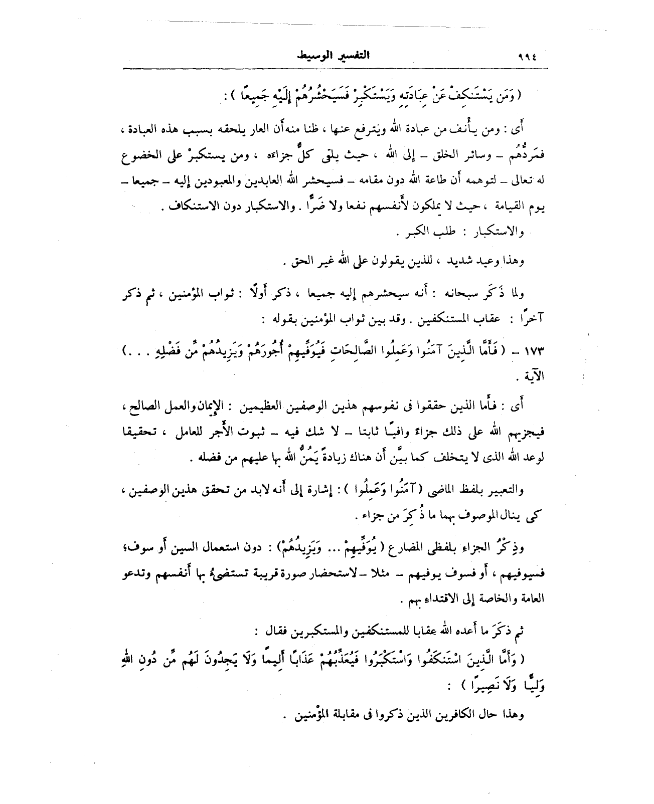 173 - ({فَأَمَّا الَّذِينَ آمَنُوا وَعَمِلُوا الصَّالِحَاتِ فَيُوَفِّيهِمْ أُجُورَهُمْ وَيَزِيدُهُمْ مِنْ فَضْلِهِ ... )