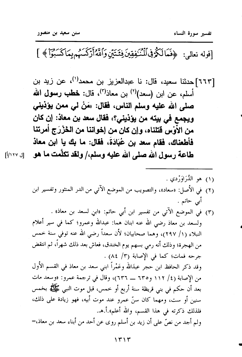 (¬٣) في الموضع الآتي من "تفسير ابن أبي حاتم": ((ابنٍ لسعد بن معاذ)).