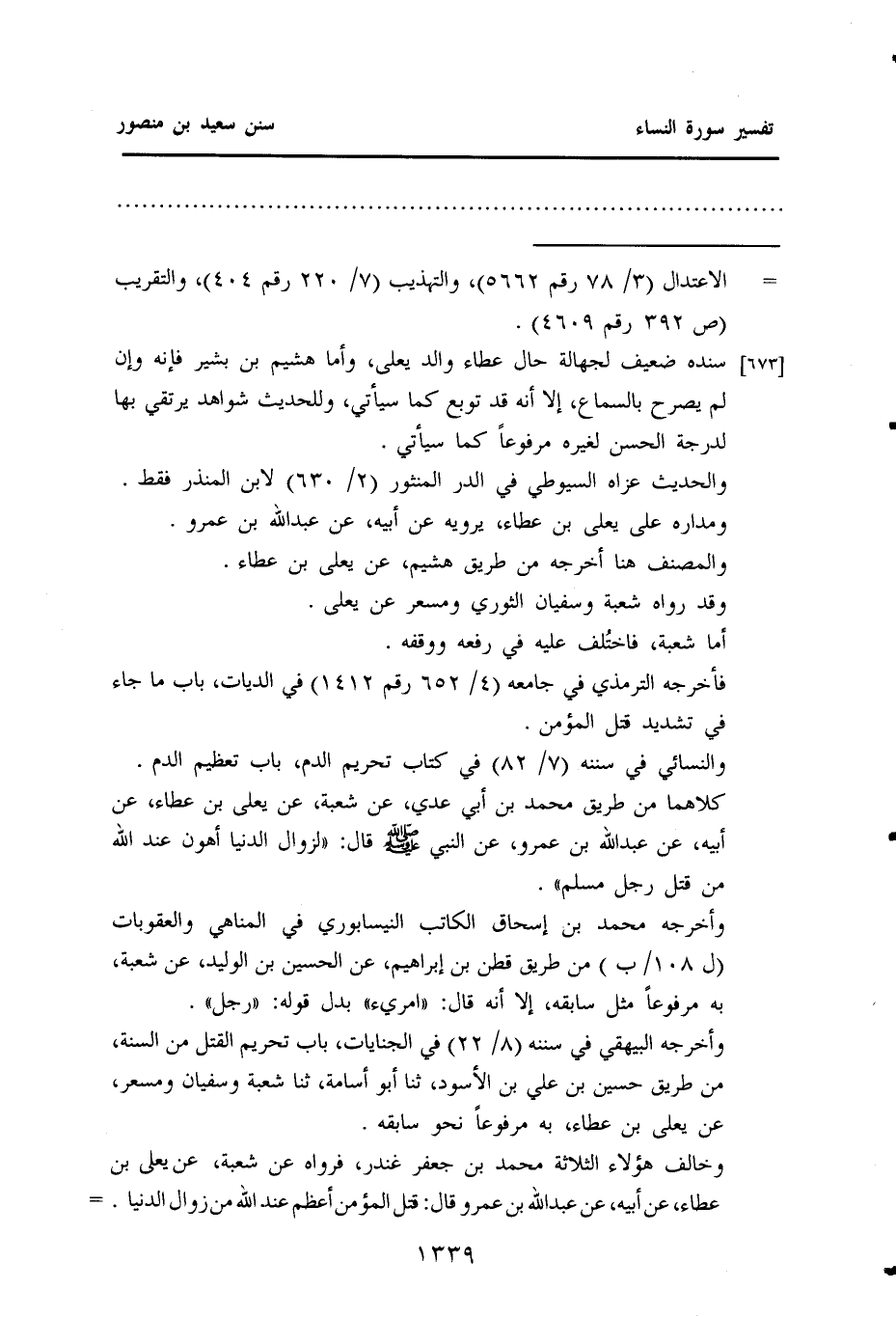 كتاب سنن سعيد بن منصور - بداية التفسير 1 - 5 ت الحميد (اسم الجزء: 4)