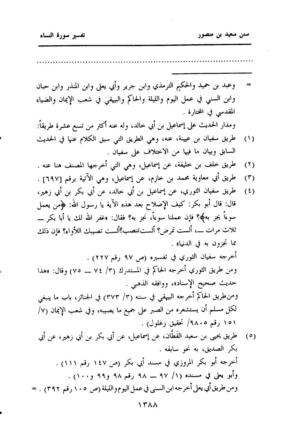 كتاب سنن سعيد بن منصور - بداية التفسير 1 - 5 ت الحميد (اسم الجزء: 4)