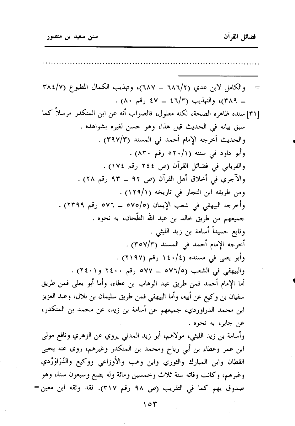 وأسامة بن زيد الليثي، مولاهم، أبو زيد المدني يروي عن الزهري ونافع مولى بن عمر وعطاء بن أبي رباح ومحمد بن المنكدر وغيرهم، روى عنه يحيى القطان وابن المبارك والثوري وابن وهب والأوزاعي ووكيع والدَّرَاوَرْدي وغيرهم، وكانت وفاته سنة ثلاث وخمسين ومائة وله بعض وسبعون سنة، وهو صدوق يهم كما في "التقريب" (ص٩٨ رقم ٣١٧) . فقد وثقه ابن معين =