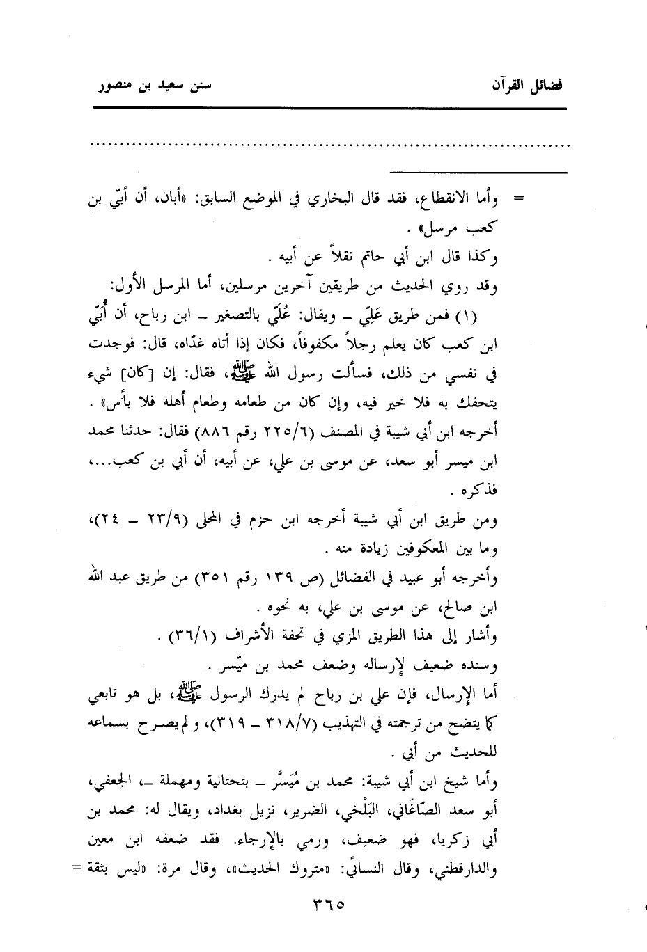 وأما شيخ ابن أبي شيبة: محمد بن مُيَسَّر - بتحتانية ومهملة -، الجعفي، أبو سعد الصّاغَاني، البَلْخي، الضرير، نزيل بغداد، ويقال له: محمد بن أبي زكريا، فهو ضعيف، ورمي بالإرجاء. فقد ضعفه ابن معين والدارقطني، وقال النسائي: ((متروك الحديث))، وقال مرة: ((ليس بثقة =