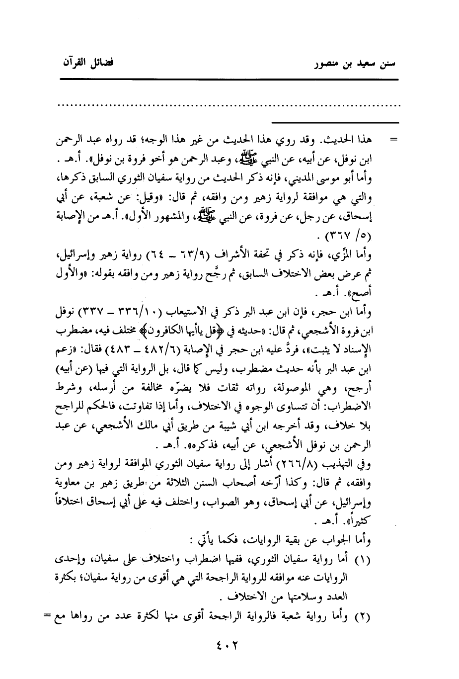 (¬١) أما رواية سفيان الثوري، ففيها اضطراب واختلاف على سفيان، وإحدى الروايات عنه موافقة للرواية الر اجحة التي هي أقوى من رواية سفيان، بكثرة العدد وسلامتها من الاختلاف.
