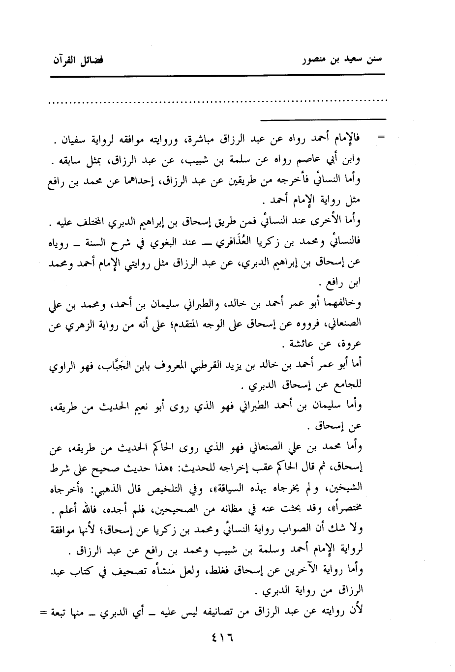ولاشك أن الصواب رواية النسائي ومحمد بن زكريا عن إسحاق؛ لأنها موافقة لرواية الإمام أحمد وسلمة بن شبيب ومحمد بن رافع عن عبد الرزاق.