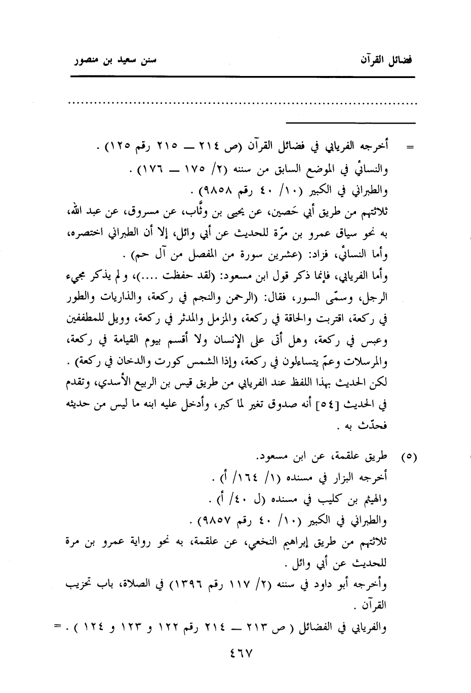 = أخرجه الفريابي في "فضائل القرآن" (ص ٢١٤ - ٢١٥ رقم ١٢٥).